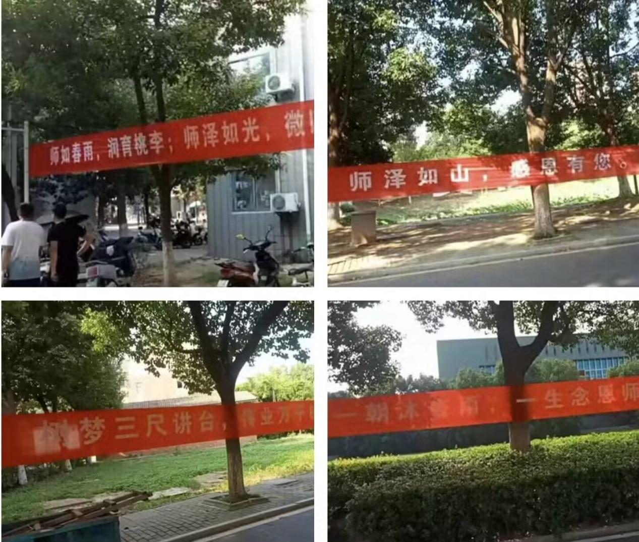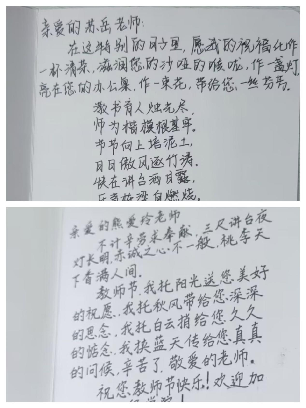 二、关爱新进教师,助力快速成长。新教师作为学院的新鲜血液,是学院教育教学的新生力量,关心慰问新教师是学院人文关怀的重要体现,有助于增进教师队伍的凝聚力。9月8日下午,院领导班子集体前往郑蒲港校区慰问三位新进辅导员,并与他们进行了深入地交流,用鲜花给她们送上节日的祝福。学生党员代表们自发为今年新进的24位教师制作了精美的贺卡,一张张贺卡,一声声问候,一段段祝福,收获的是老师们的笑容,让老师们感受到了学院浓浓的关爱之情。与此同时,一条条醒目的致敬老师的横幅悬挂于校园间,更添了浓厚的节日氛围,让老师们沉浸在为师的幸福与自豪中。
