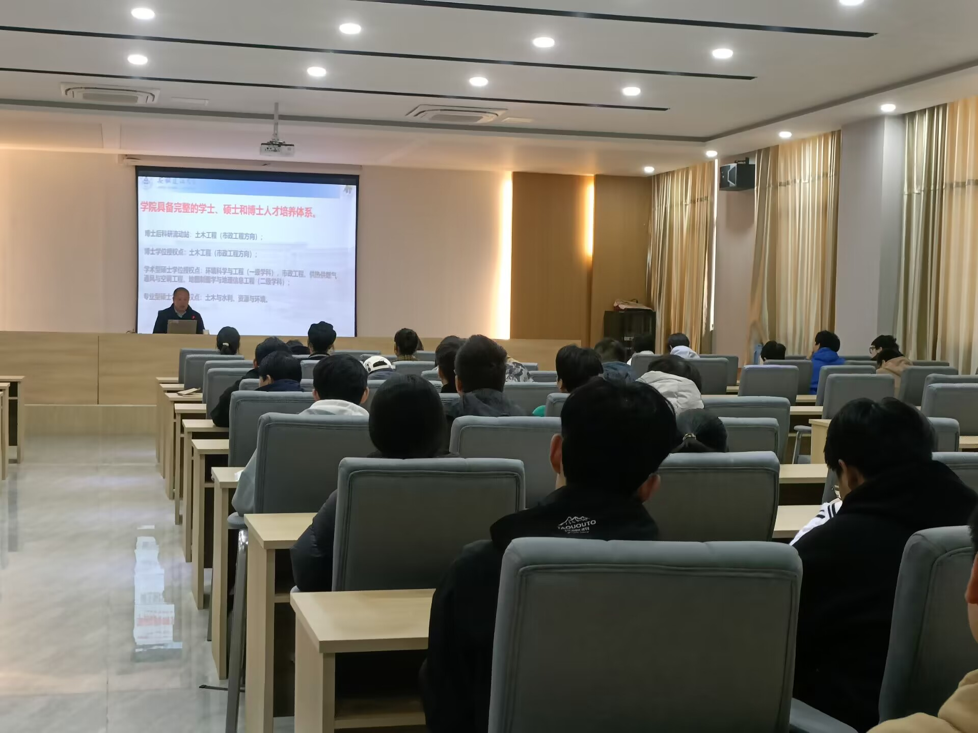 随后,谢发之、黄健等一行领导移步至我院报告厅进行了硕士研究生招生宣讲工作,商娟、何婷、李锦景和部分给排水专业、土木工程专业的学生参会。
