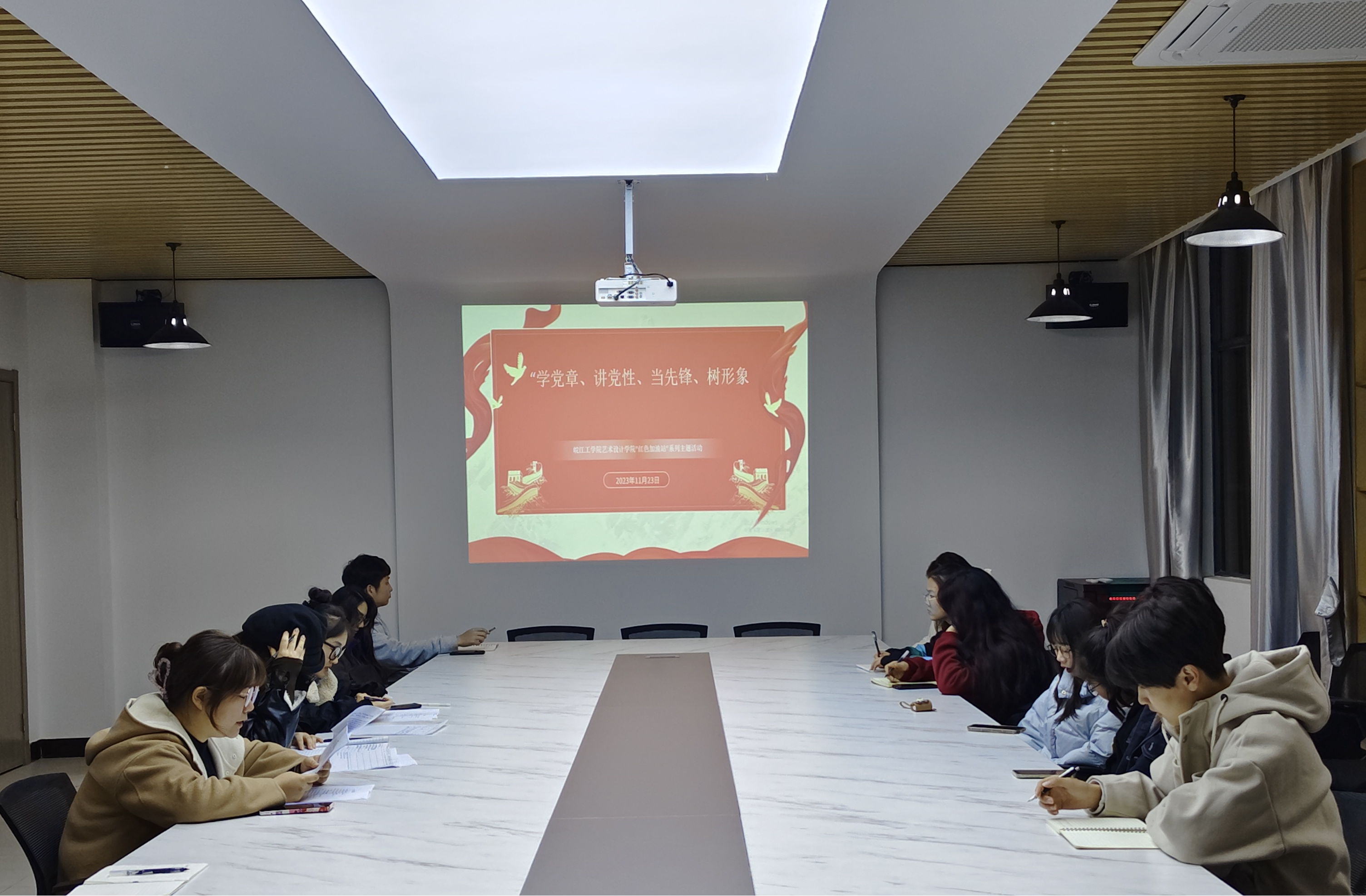 为深入学习贯彻习近平新时代中国特色社会主义思想,进一步引领艺术设计学院团员同学和入党积极分子加强对党章的学习,艺术设计学院党总支学生党支部联合学院分团委于11月23日下午在学院203会议室开展了“学党章、讲党性、当先锋、树形象”主题的教育学习活动。会议由院分团委书记刘慧主持,全院团支部书记共同参加了学习。