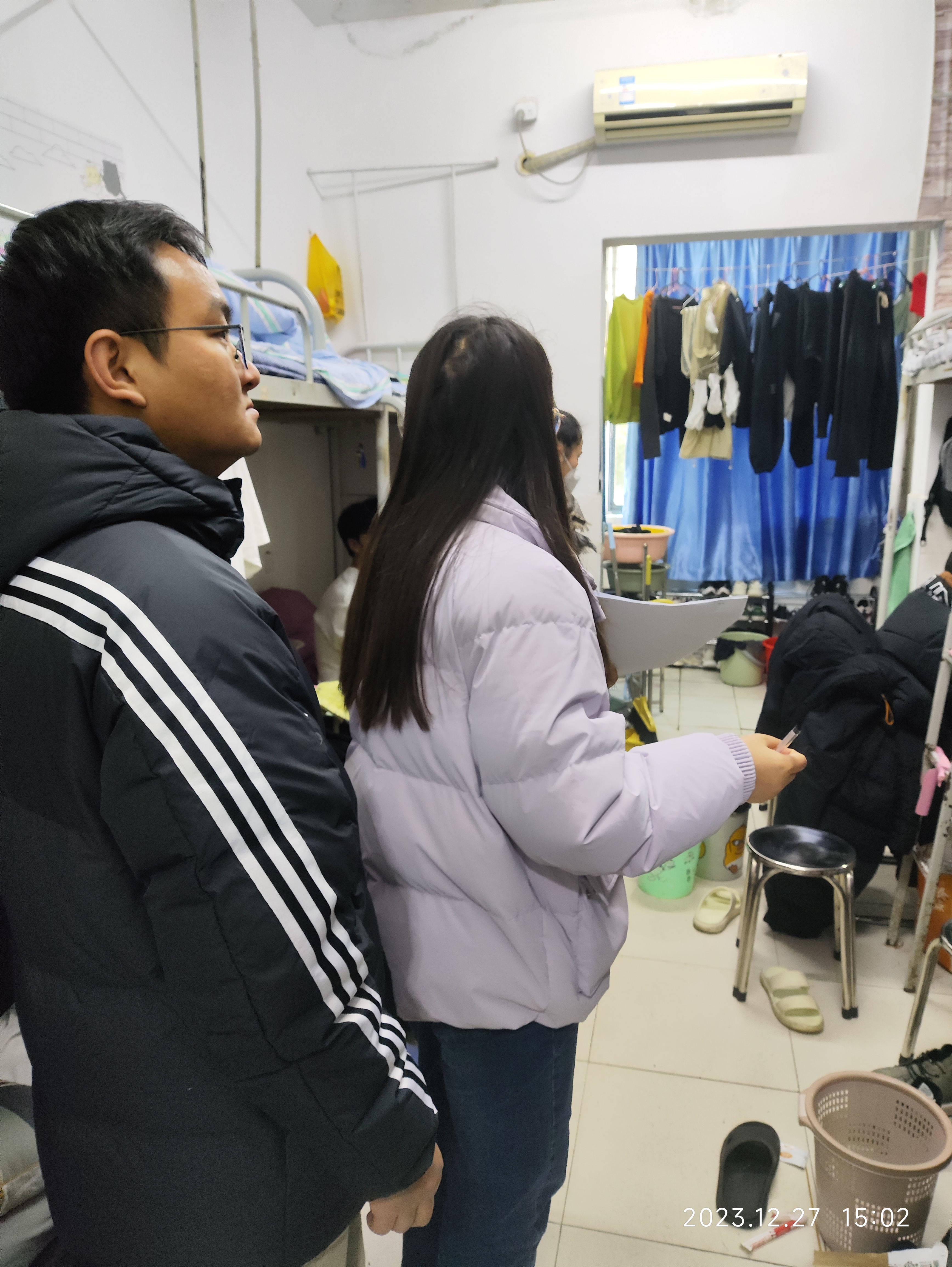为贯彻学校关于做好岁末年初校园安全工作的部署要求,进一步加强学生社区的安全防范,确保元旦及寒假前我院学生寝室安全稳定,12月27日下午,由水利工程学院党总支副书记王秋玉带队,霍里山校区全体辅导员一行9人,对我院全体学生寝室开展安全卫生检查。