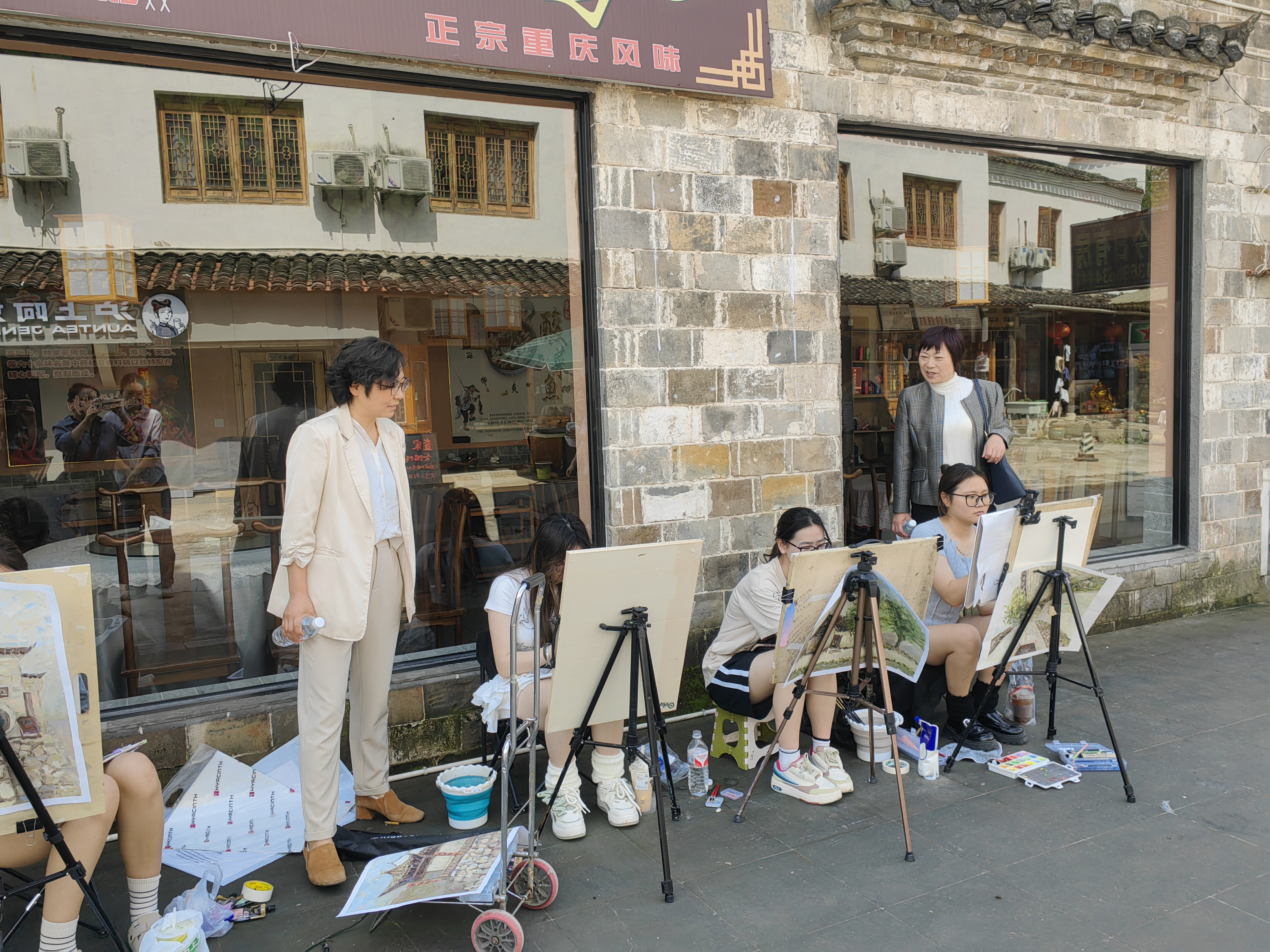 为落实2023级专业人才培养方案,更好的实现实践教学效果和育人功能,提高我院学生的艺术素养和风景写生创作能力,艺术设计学院数字媒体艺术和产品设计专业的210名同学在阎磊、张琼、涂燕茹、汪芳洁、左镜鸥五位教师的带领下,于2024年4月8日-18日开展为期两周的查济古镇调研写生教学活动。