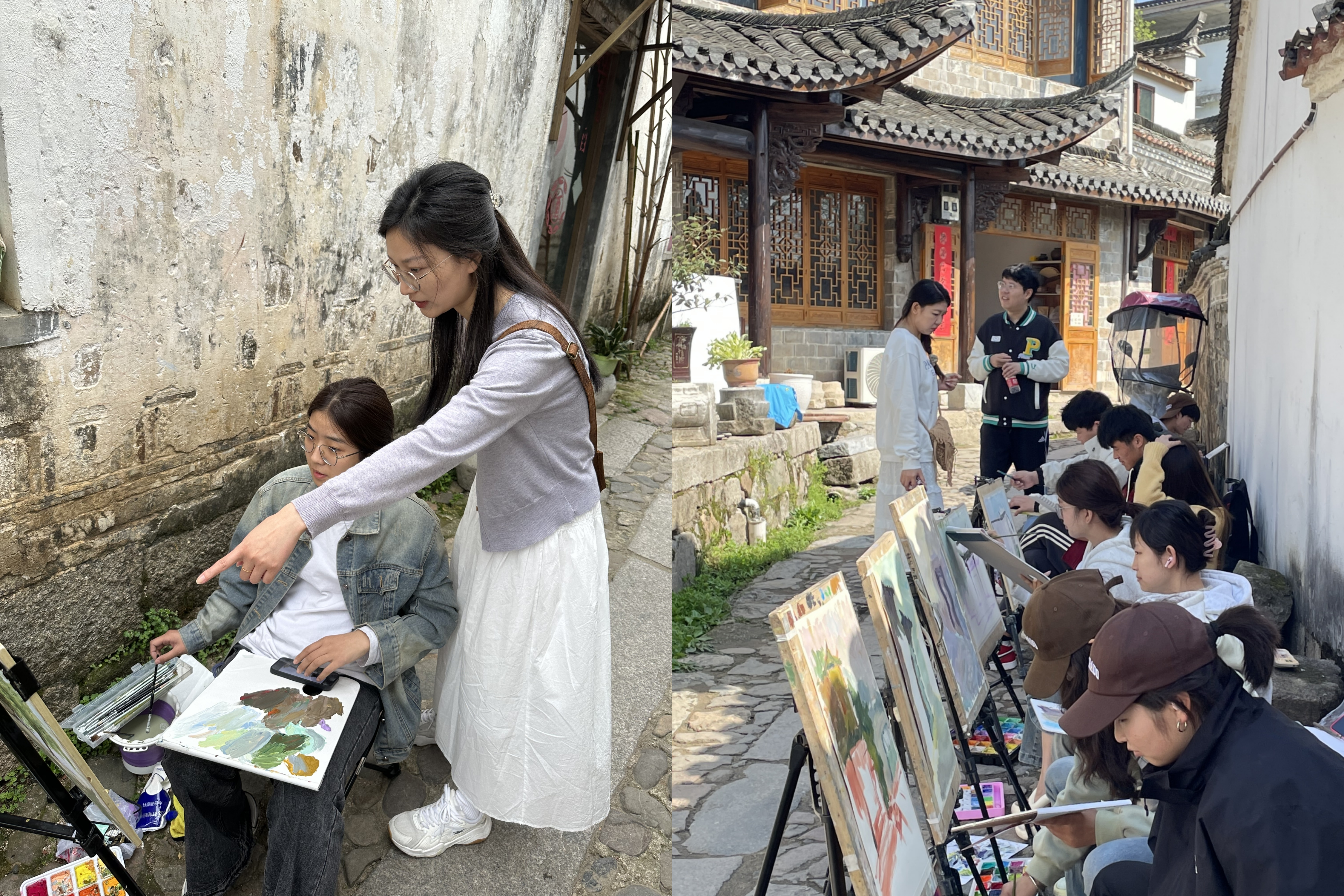 活动期间,同学们穿梭在历史文化悠久的安徽查济古村落,沉浸于徽派建筑风格的魅力,在美景中寻找历史的痕迹。在老师的指导下,同学们对当地的景观、建筑、人文都有了一定的感受和体会,将意境通过构图、疏密、节奏等用画笔记录和表达。为了更好地拓展艺术专业基础知识面,提升同学们民族文化自信,师生们分别对中国宣纸文化园、桃花谭景区、新四军军部进行考察调研,通过感受我国深厚的文化底蕴,激起了同学们的爱国情怀,起到了课程思政的作用,也在实践中得到了成长。