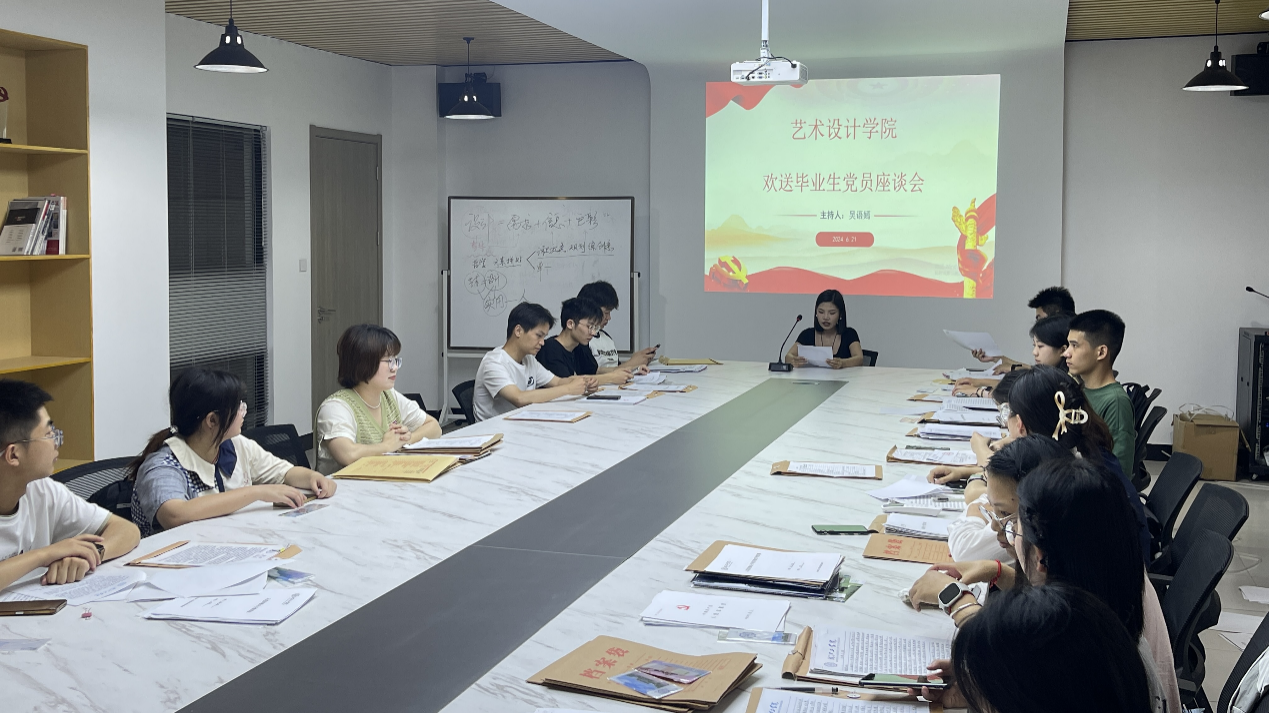 为表达对毕业班党员的深深祝福和殷切期望,2024年6月21日,艺术设计学院学生党支部在洪雅楼203会议室召开了欢送毕业生党员座谈会,会议由学生党支部书记吴语嫣主持,支部全体党员参加会议。