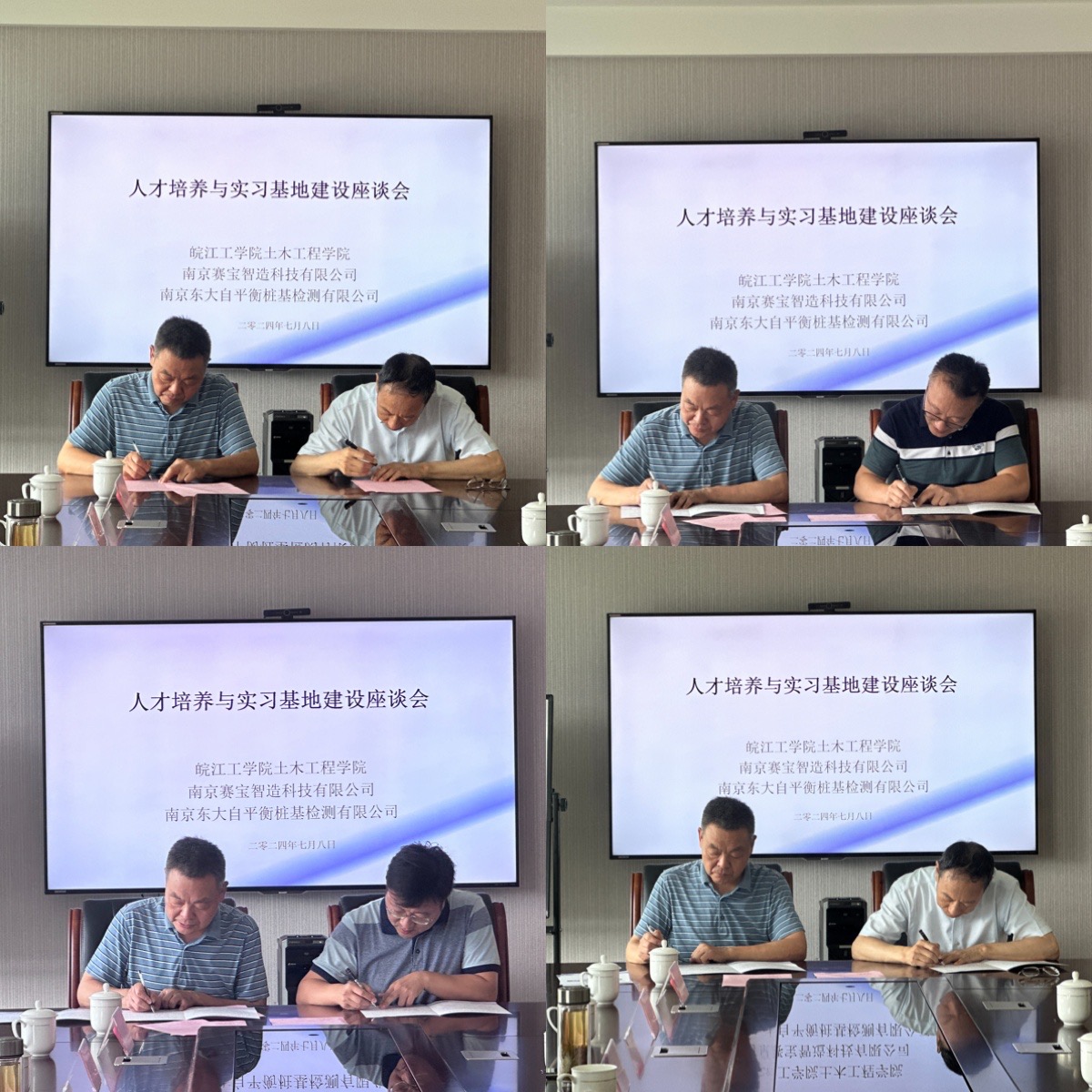 为进一步深化产教融合,助力高质量创新型应用型人才培养,7月8日下午,土木工程学院与南京东土建设科技有限公司、南京东大自平衡桩基检测有限公司和南京赛宝智造科技有限公司三家企业开展交流座谈,分别签订了人才培养与就业基地建设合作协议,并与南京赛宝智造科技有限公司签订了实习基地协议。南京东土建设科技有限公司总经理、东南大学土木工程学院教授龚维明,南京东大自平衡桩基检测有限公司副总经理缪国军,南京赛宝智造科技有限公司总经理戴欣,土木工程学院院长唐德高、副院长李杰如、工程结构教研室主任徐中秋、土力学与地基基础教研室主任刘加冬、土木工程专业副教授练兰英等参加。