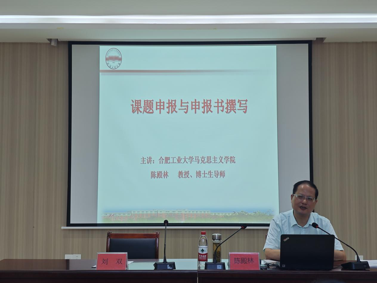 7月7日,合肥工业大学博士生导师、合肥工业大学马克思主义理论博士点“中国近现代史基本问题研究”学科带头人、马克思主义学院学术委员会主任,国家社科基金通讯评审专家、教育部社科规划项目、安徽省社科规划项目评审专家陈殿林教授,在马克思主义学院多功能会议室为我院教师开展主题讲座,马克思主义学院总支书记、常务副院长刘双,副院长胡耀东,各教研室主任及全体思政课教师参加。会议由刘双主持。