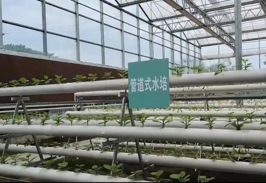 走进和县台创园,团队成员被园区内生机勃勃的景象所吸引。首先映入眼帘的是一排排整齐划一的智能温室,其采用了台湾先进的温室种植技术,能够实现对作物生长环境的精准控制。在温室内有各种高科技农业设备的运作,如自动化喷灌系统、播种机等,这些设备的应用大大提高了农业生产效率。园内还展示了管道式水培、空中栽培等培育方式,这不仅大大节约了土地面积,还提高农业生产效率。