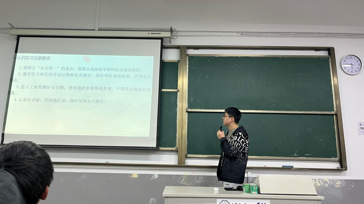 接着,丁杰老师对实习工作进行了详细的部署和安排。他介绍了实习的具体时间、地点、内容以及相关的管理规定和要求。要求学生们要服从学校的整体安排,严格遵守实习单位的规章制度和工作纪律,认真完成既定的实习任务。同时,丁杰老师也强调了实习期间的安全问题,要求学生们要树立安全意识,保护好自己的人身安全和财产安全。
