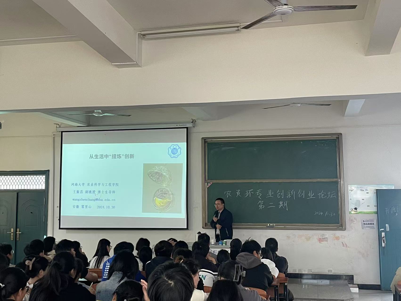 10月30日下午,河海大学王振昌副教授应邀参加农业资源与环境专业第二期创新创业论活动,农资环专业教师以及学生代表参加了此次活动。活动由农资环教研室主任黄双双主持。