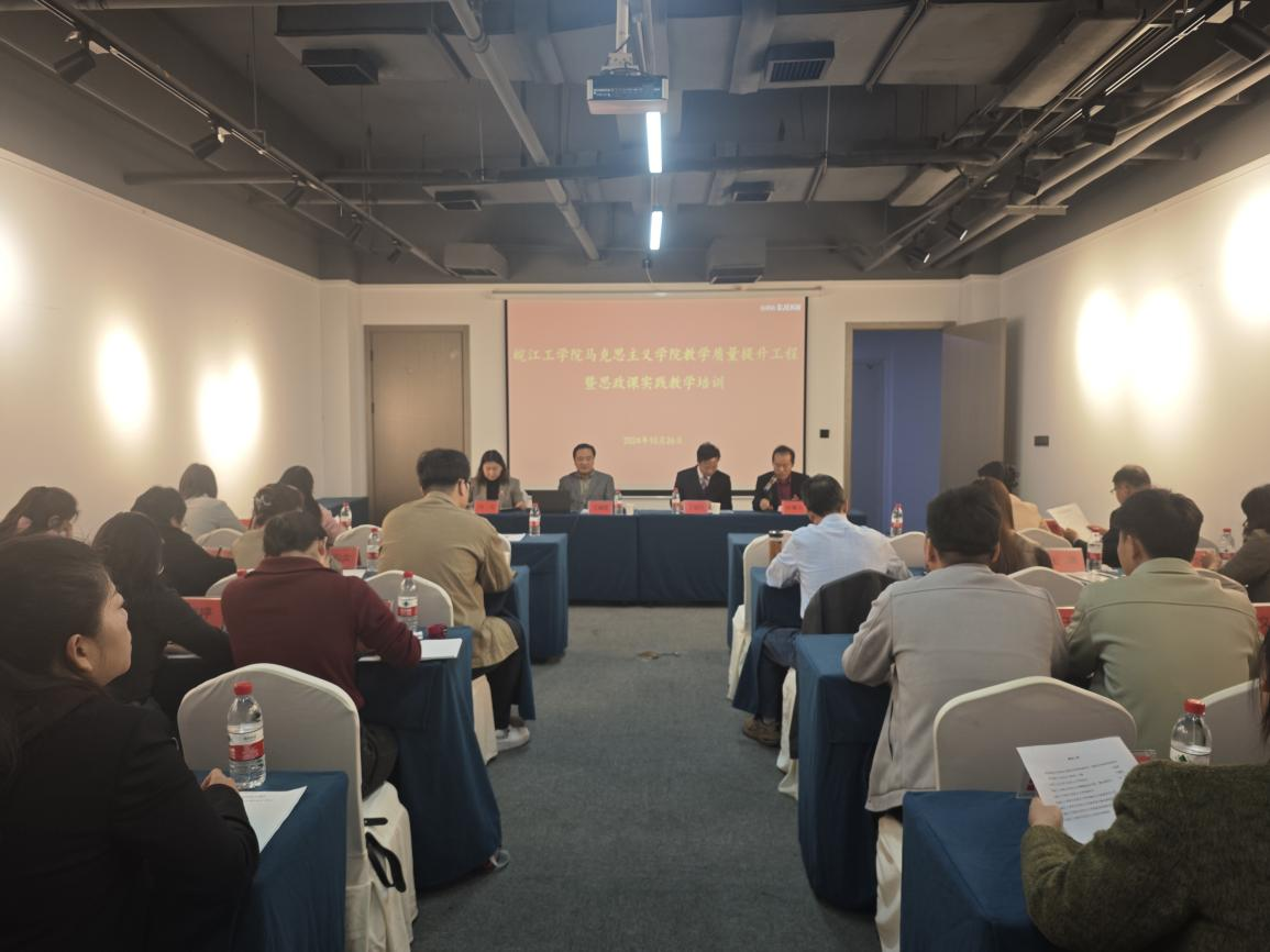 为了进一步提升思政课教师的教学能力,打造高素质、专业化的思政课教学团队,10月26日在武汉,开展马克思主义学院教学质量提升工程暨思政课实践教学培训,邀请华中师范大学政治与国际关系学院副院长、社会主义研究期刊主编王建国教授,湖北工业大学马克思主义学院院长丁银河教授开展讲座。马克思主义学院党总支书记、常务副院长刘双,副院长胡耀东,教研室主任及全体思政课教师参加了此次活动。讲座由胡耀东主持。