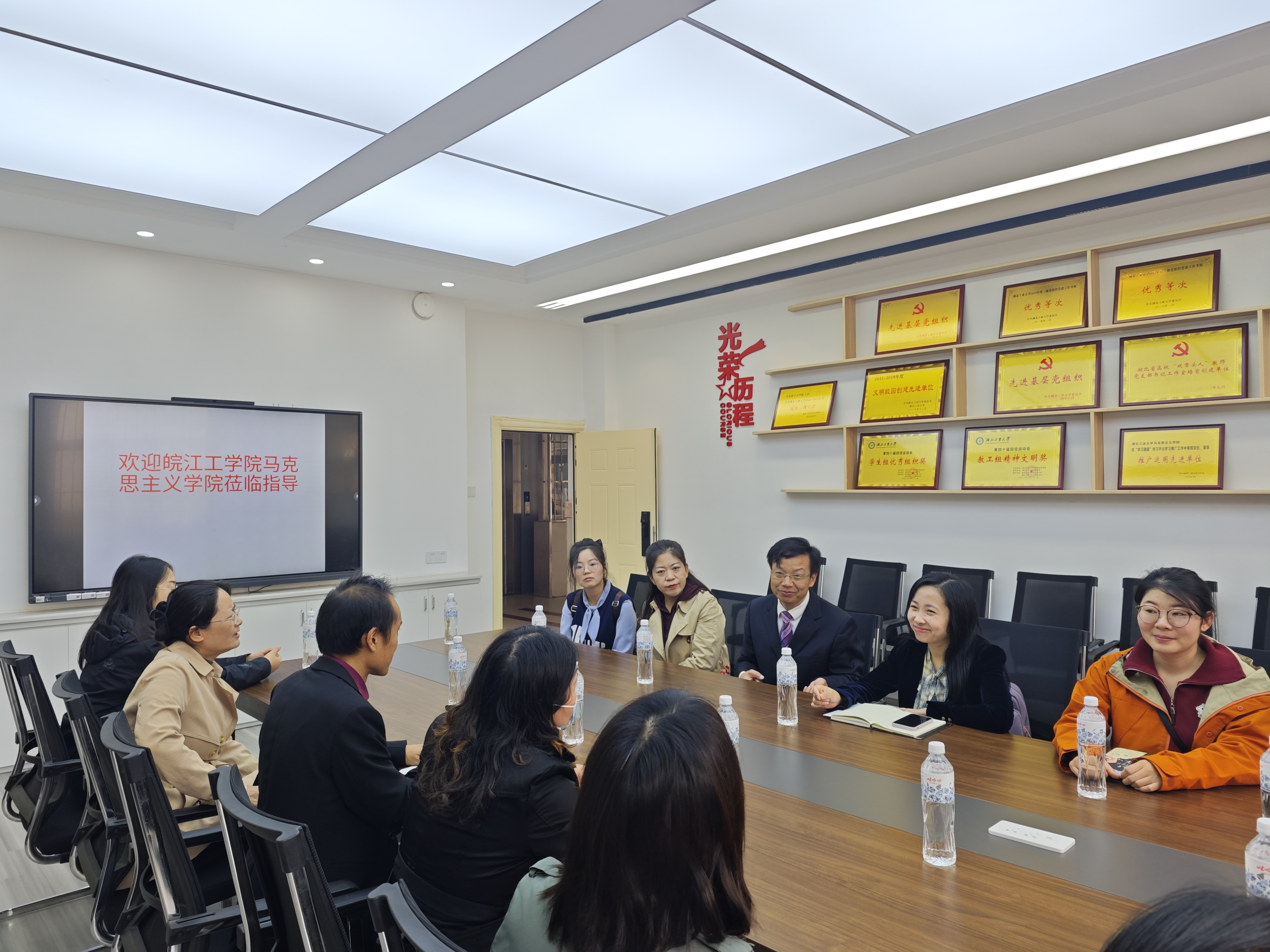 10月27日,马克思主义学院党总支书记、常务副院长刘双、副院长胡耀东、各教研室主任以及全体思政课教师赴湖北工业大学马克思主义学院开展调研学习。湖北工业大学马克思主义学院院长丁银河、副院长华倩出席调研。
