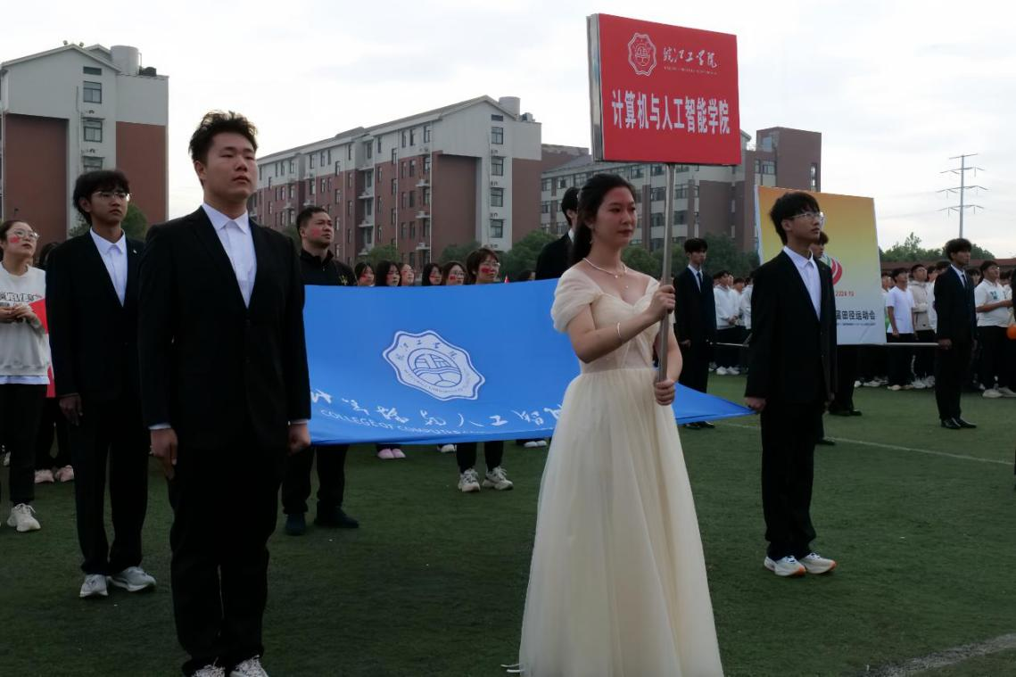 本次方队队伍由院长胡徐胜、党总支副书记韦晨珺娃、院长助理张蒙带队,由2024级大一新生组成学生方队。他们身着统一的服装,面带微笑,目光坚定,高举着“信息领航,计智翱翔;运动赛场,青春飞扬”的醒目横幅,精神饱满、气宇轩昂,迈着整齐划一、铿锵有力的步伐,充分展现了计算机与人工智能学院严谨的学风和团结奋进的精神面貌。