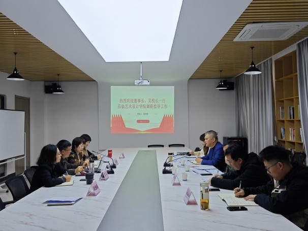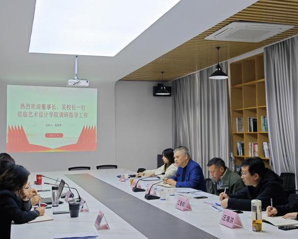 为深入了解艺术设计学院教学经费使用情况,确保学院合格评估工作顺利进行,11月18日上午,董事长朱洪高、校长吴继敏以及职能部门相关人员一行莅临艺术设计学院调研指导工作,学院党政领导班子和党政办副主任参加会议。