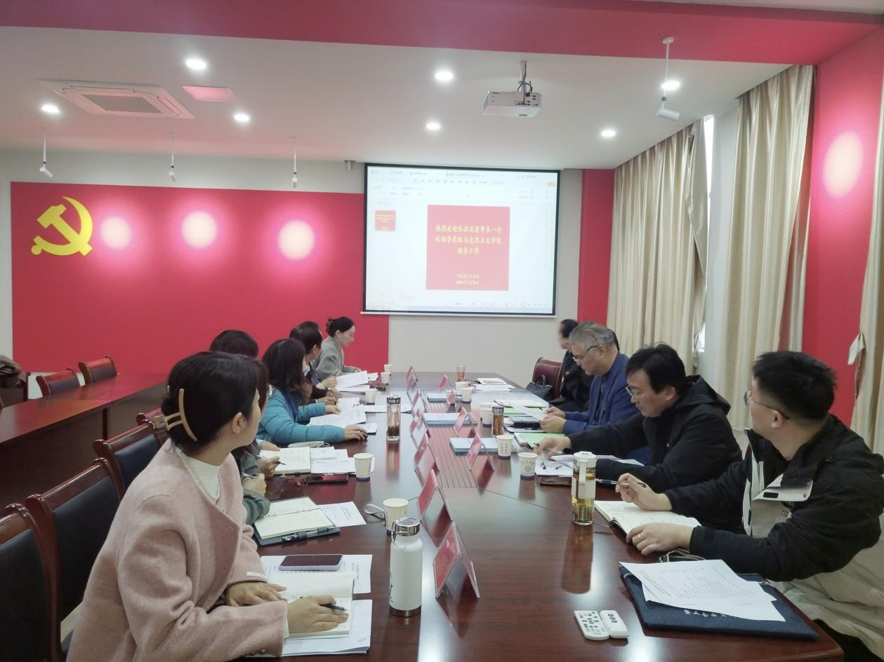 朱洪高董事长针对学院发展及汇报内容指出:学校对马院工作 充分认真准备、高度重视、总体工作等给予肯定,并从课时总容量、银龄教师聘任、教学运行经费、教研室质量保障体系、学校会风纪律等方面梳理与探讨。重点强调,虽然合格评估压力大,但要提高政治站位,抓住点面线,拓宽思路,进一步加强教学管理工作的规范化运行。