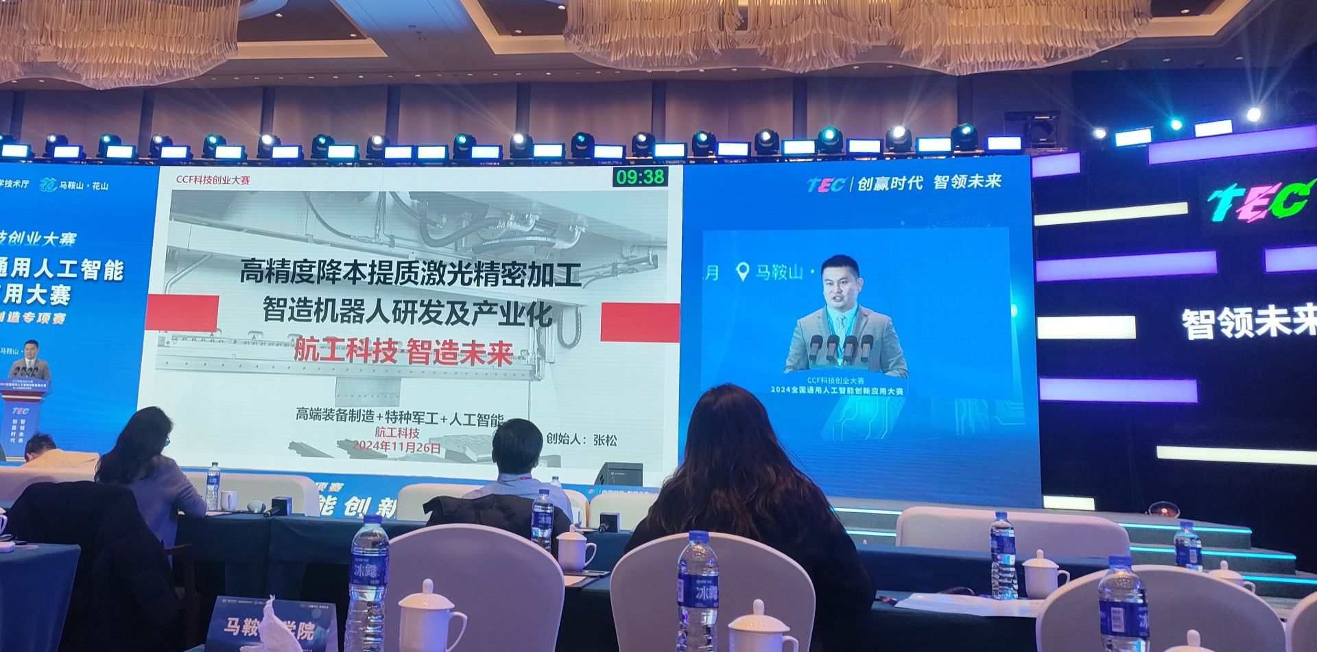 七位人工智能领域的专家从技术创新、商业模式、市场前景、团队实力等方面,对参赛项目进行深入的评估。经严格评审,航工军特智能科技公司的“高精度降本提质激光精密加工制造机器人研发及工业化”项目摘得AI+工业制造专项赛桂冠。