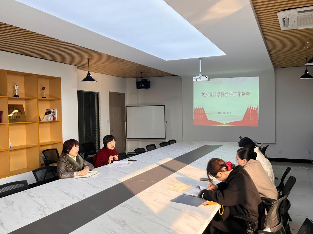 12月12日上午,艺术设计学院于洪雅楼 203 会议室召开学院辅导员年终述职考评及总结会议。学院党总支书记张亚梅、副书记程楠楠以及各年级辅导员线上线下参会,共同回顾总结过去一年的工作。