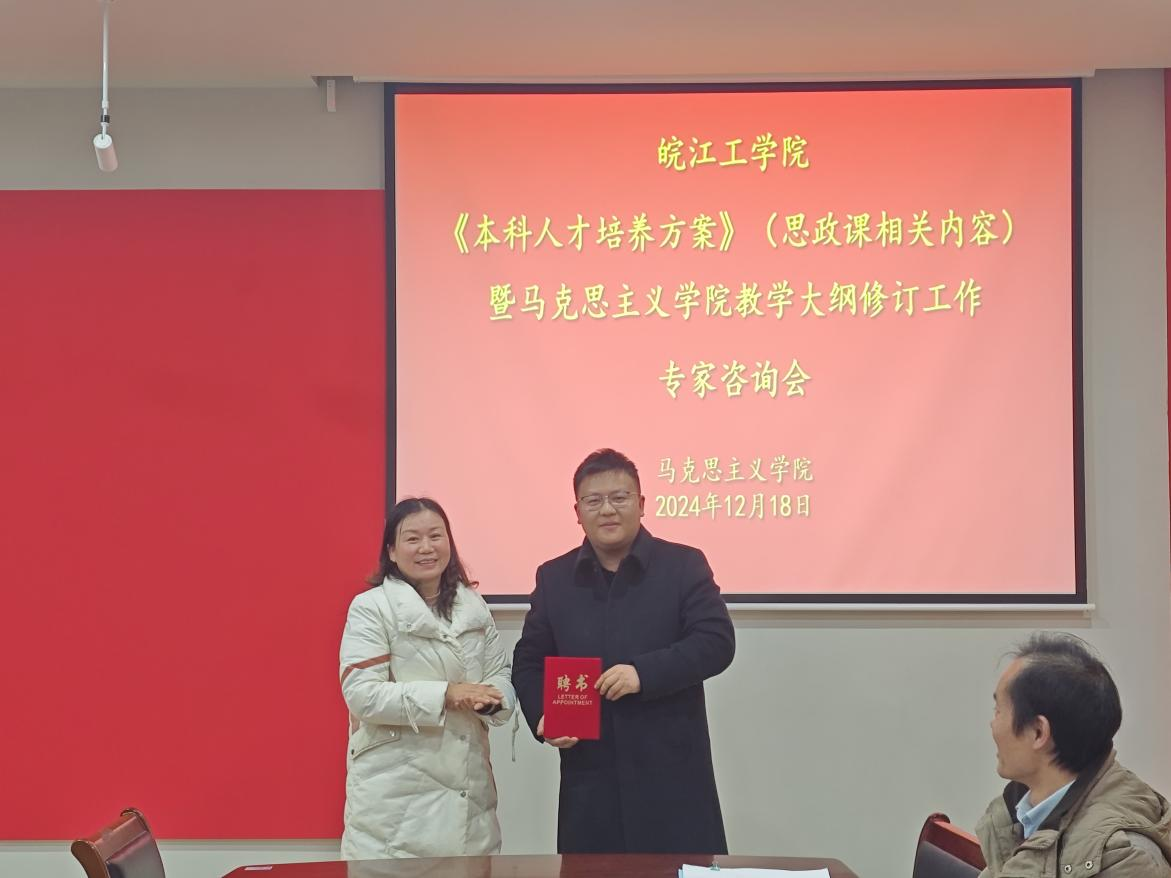12月18日,马克思主义学院在党员活动室召开AC米兰官方网站《本科人才培养方案》(思政课相关内容)暨马克思主义学院教学大纲修订工作专家咨询会,会议邀请了河北大学马克思主义学院教授、博士生导师、全国模范教师、全国思政课教师年度影响力人物、国家社科项目鉴定专家、河北省教学名师柴素芳教授;安徽工业大学马克思主义学院院长、博士生导师、教育部“全国高校优秀中青年思想政治理论课教师择优资助计划”、全国高校思政课名师工作室负责人郑洁教授;安徽信息工程学院马克思主义学院院长助理任晨晨等三位专家作为培养方案、教学大纲修订的修订指导专家。学院党总支书记、常务副院长刘双,副院长胡耀东,各教研室主任及全体教师参加。会议由刘双主持。