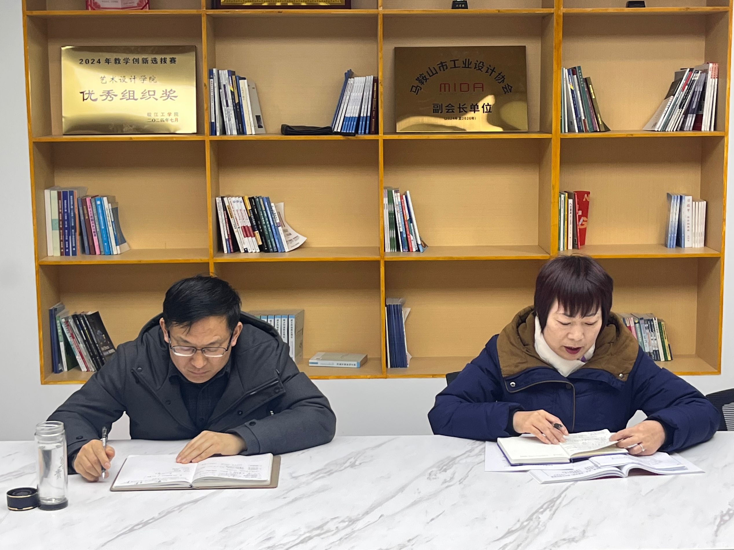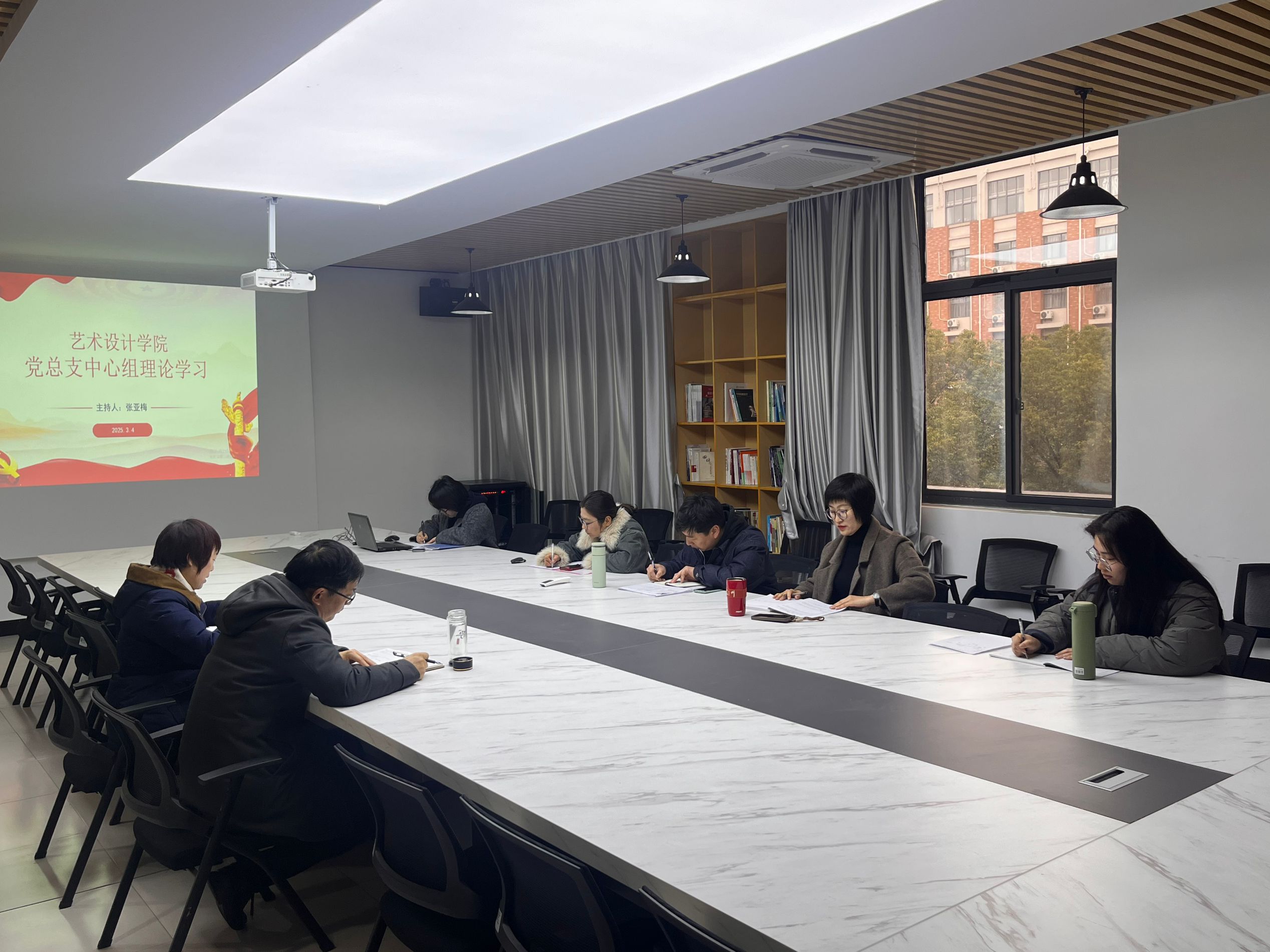 为深入贯彻落实学校党委关于本科教学工作合格评估的决策部署,以高质量党建引领学院高质量发展。2025年3月4日上午,艺术设计学院在洪雅楼203组织召开了党总支中心组理论学习会。会议由党总支书记张亚梅主持,院长伍旭坤、副院长金花、副书记程楠楠、教工支部书记曹哲和学生支部书记吴语嫣参加会议。
