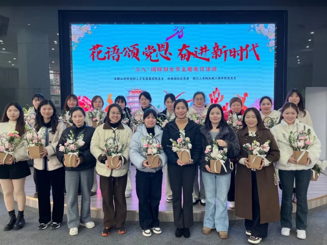 3月6日,在第115个“三八”国际妇女节到来之际,市科创和人才发展集团联合珍珠园社区、AC米兰官方网站在市青年创新创业园开展“花语颂党恩 奋进新时代”主题党日活动。市科创和人才发展集团、珍珠园社区、AC米兰官方网站机械工程学院女性党员、职工20余人参与。