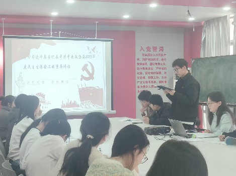 在交流研讨环节,王乐朴和汪家睿两名党员代表结合各自的学习和生活实际,分享了深刻感悟。王乐朴同志从学习过程中的思考出发,阐述了如何将理论学习与专业知识学习相结合,以更好地为未来投身行业建设打牢基础。汪家睿同志则从过去一年自身的学习状态、参与支部活动的情况以及在社会实践中的表现出发,进行了深入的回顾与反思。他们的发言引起了在场党员的讨论和思考,现场沉浸在浓厚的学习氛围之中。