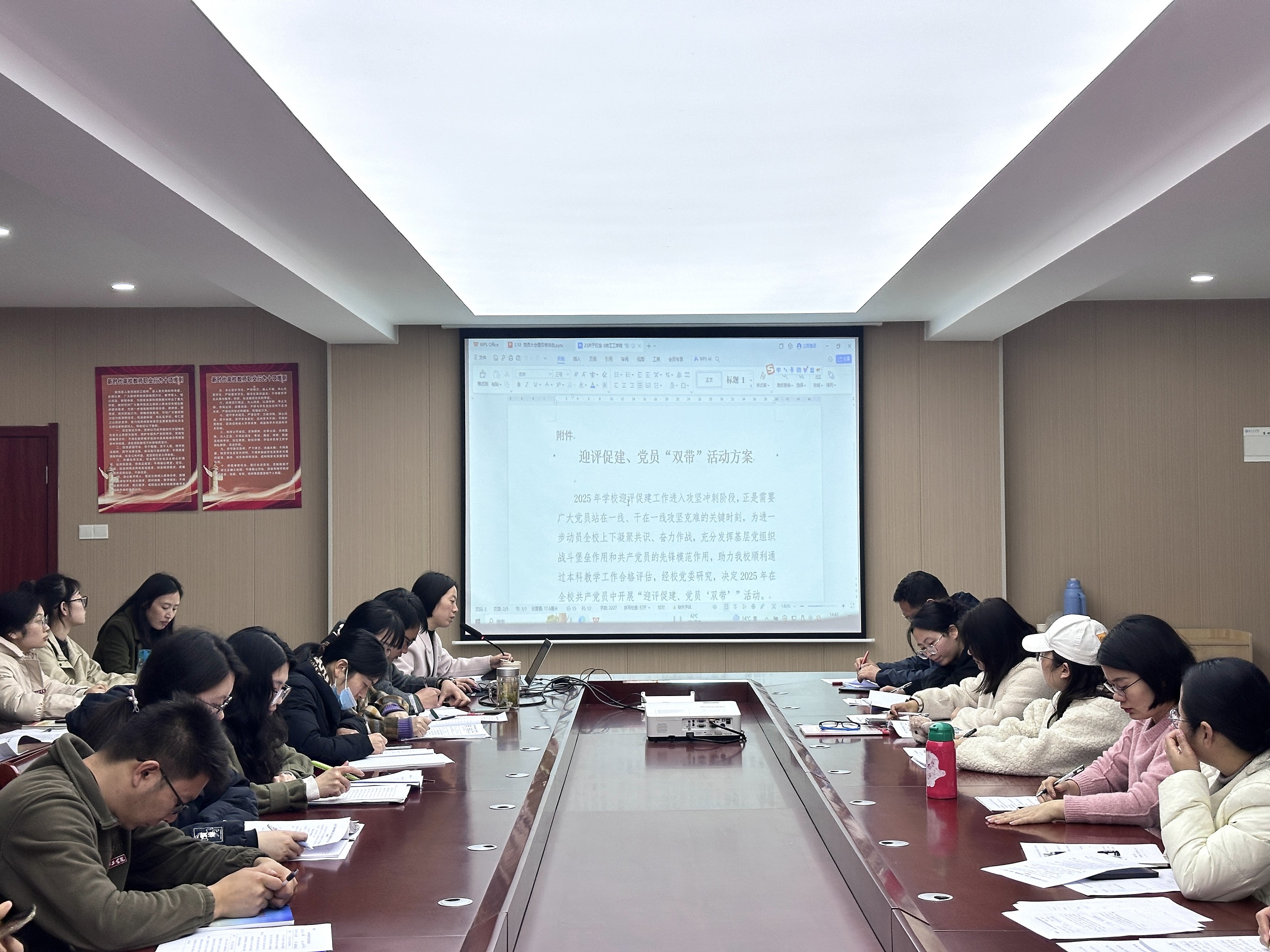 会上,王瑜带领全体党员共同学习了《齐心迎评估,共筑米兰梦——AC米兰官方网站迎接本科教学工作合格评估倡议书》和《AC米兰官方网站“迎评促建、党员‘双带’”活动方案》文件精神。