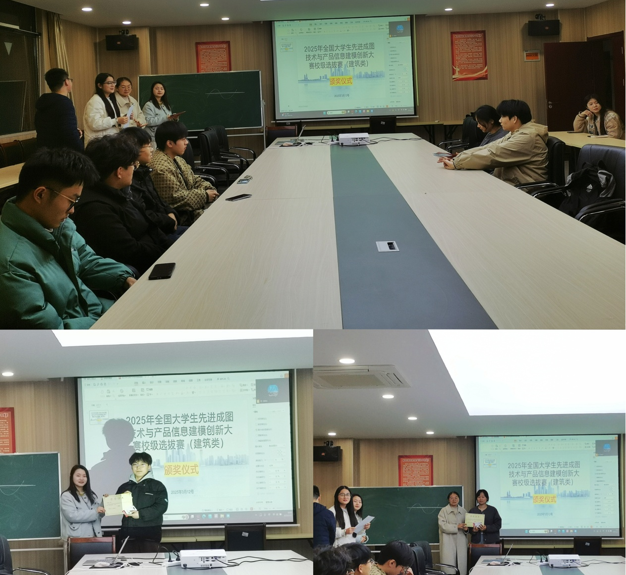 3月12日,管理学院工程管理教研室在学院会议室举行“2025年大学生先进成图技术与产品信息建模创新大赛(建筑类)”校赛颁奖仪式,仪式由管理学院主办,工程管理教研室承办。教研室副主任杨焱、梁英平,以及大赛的指导教师桂玉环、汪芳芳出席了此次颁奖典礼。来自霍里山参赛学生共15名参加了此次颁奖典礼。仪式由工管教研室大赛指导教师桂玉环主持。