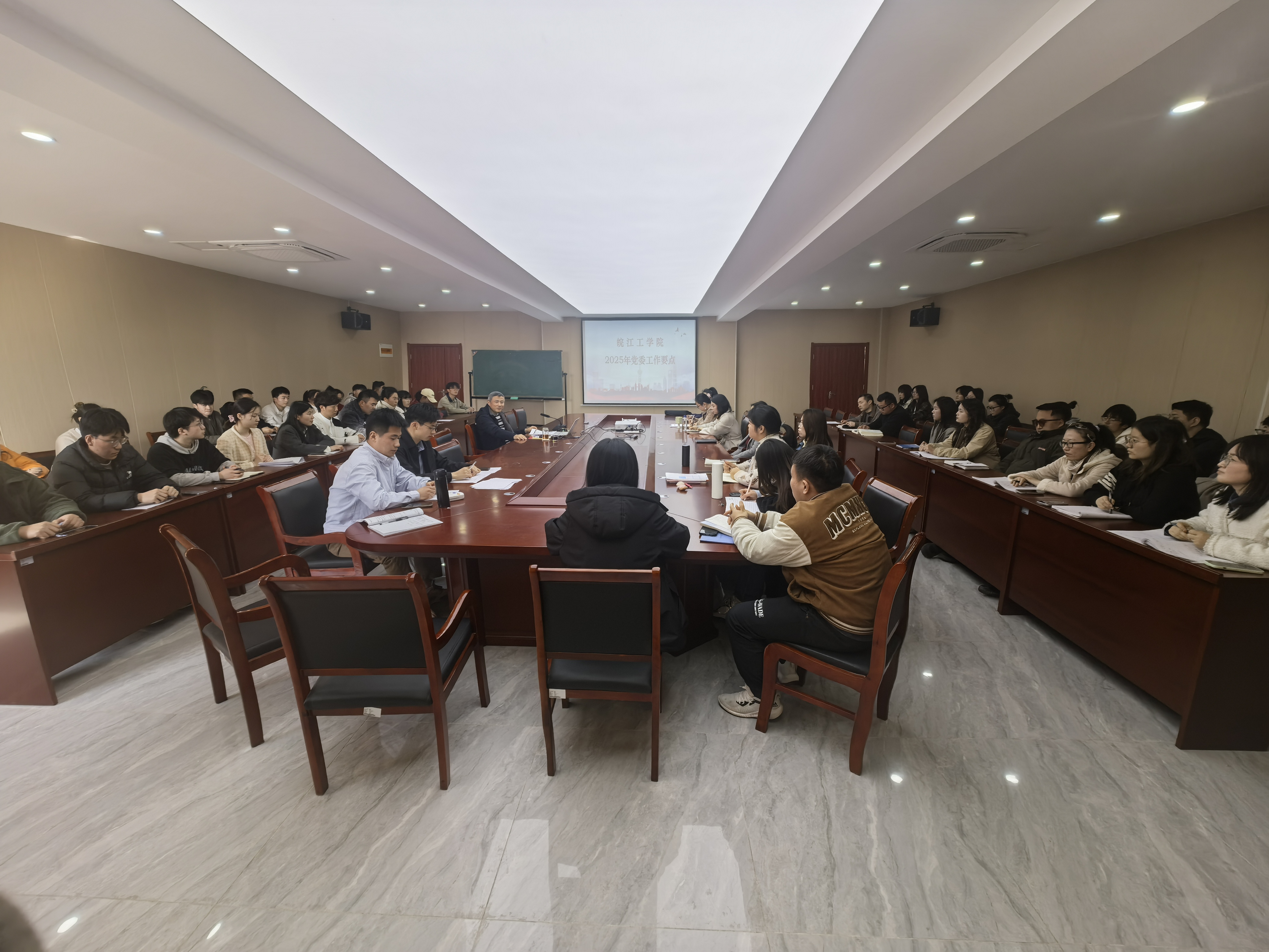 李冠华书记强调坚持以习近平新时代中国特色社会主义思想为指导,深入贯彻党的二十大精神,全面落实习近平总书记关于教育的重要论述和考察安徽重要讲话精神。坚持和加强党对教育工作的全面领导,全面贯彻党的教育方针,落实立德树人根本任务,以贯彻落实学校第二次党代会精神为主线,充分发挥党组织的战斗堡垒作用和党员的先锋模范作用,全力保障2025年学校本科教学工作合格评估高质量通过,着力实现“十四五”规划顺利收官。