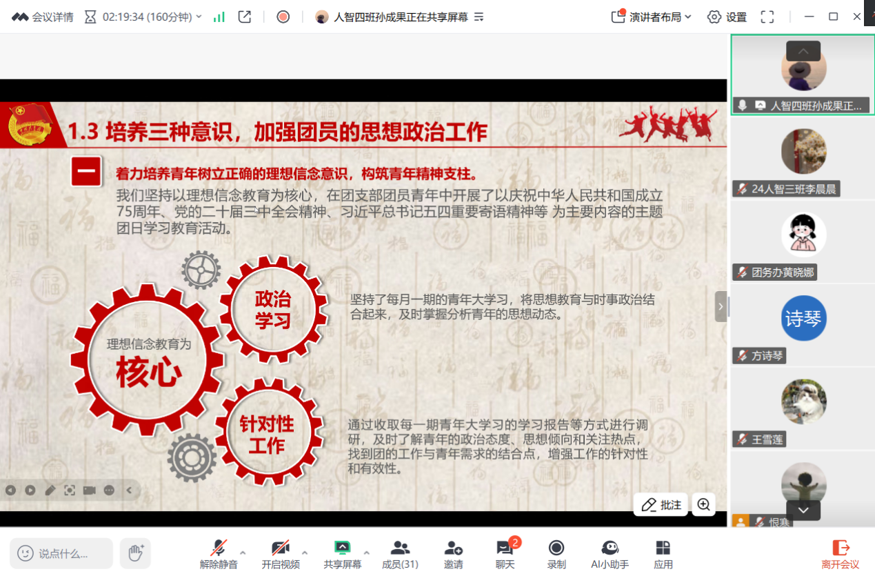 计算机与人工智能学院顺利开展基层团组织述职汇报线上会议