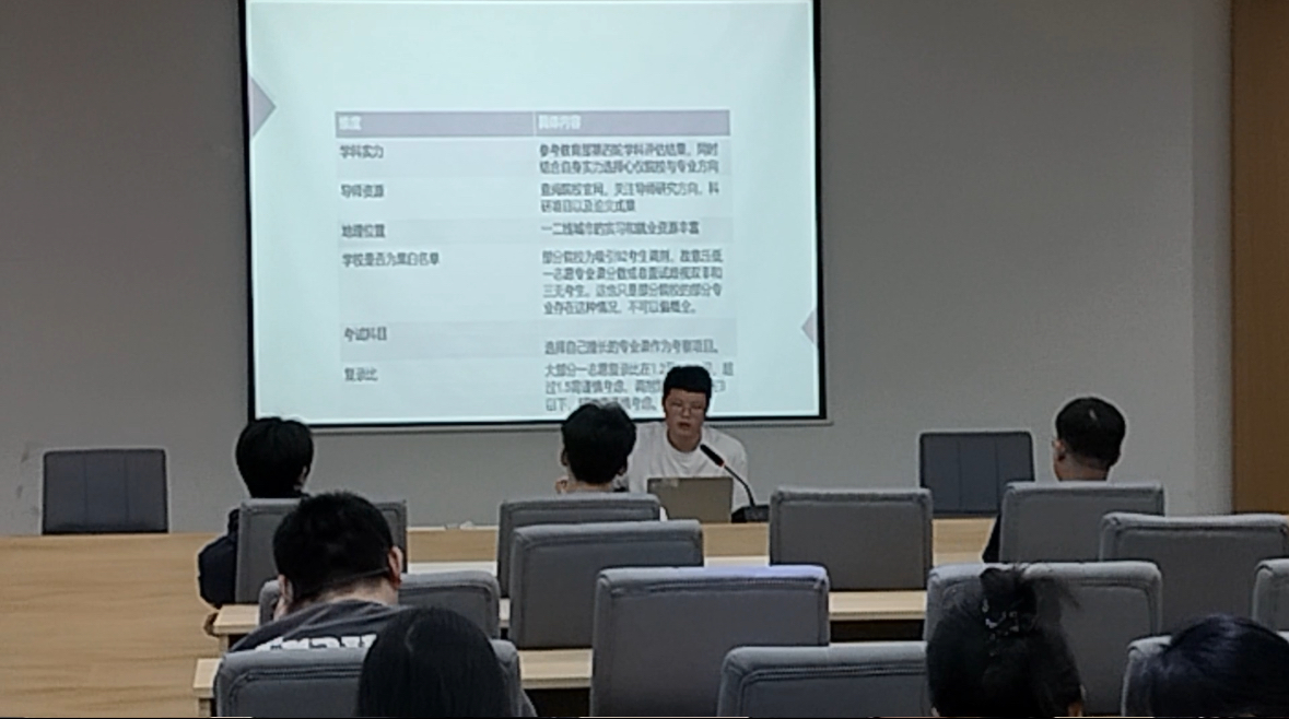 活动中,各位学长结合自身备考经历,系统梳理考研全流程要点。围绕院校专业选择策略、阶段复习规划制定、备考心态调整方法、公共课应试技巧解析及复试注意事项等板块,通过翔实的数据对比,科学的时间管理及真实案例,为在场学子构建起立体化的备考体系。