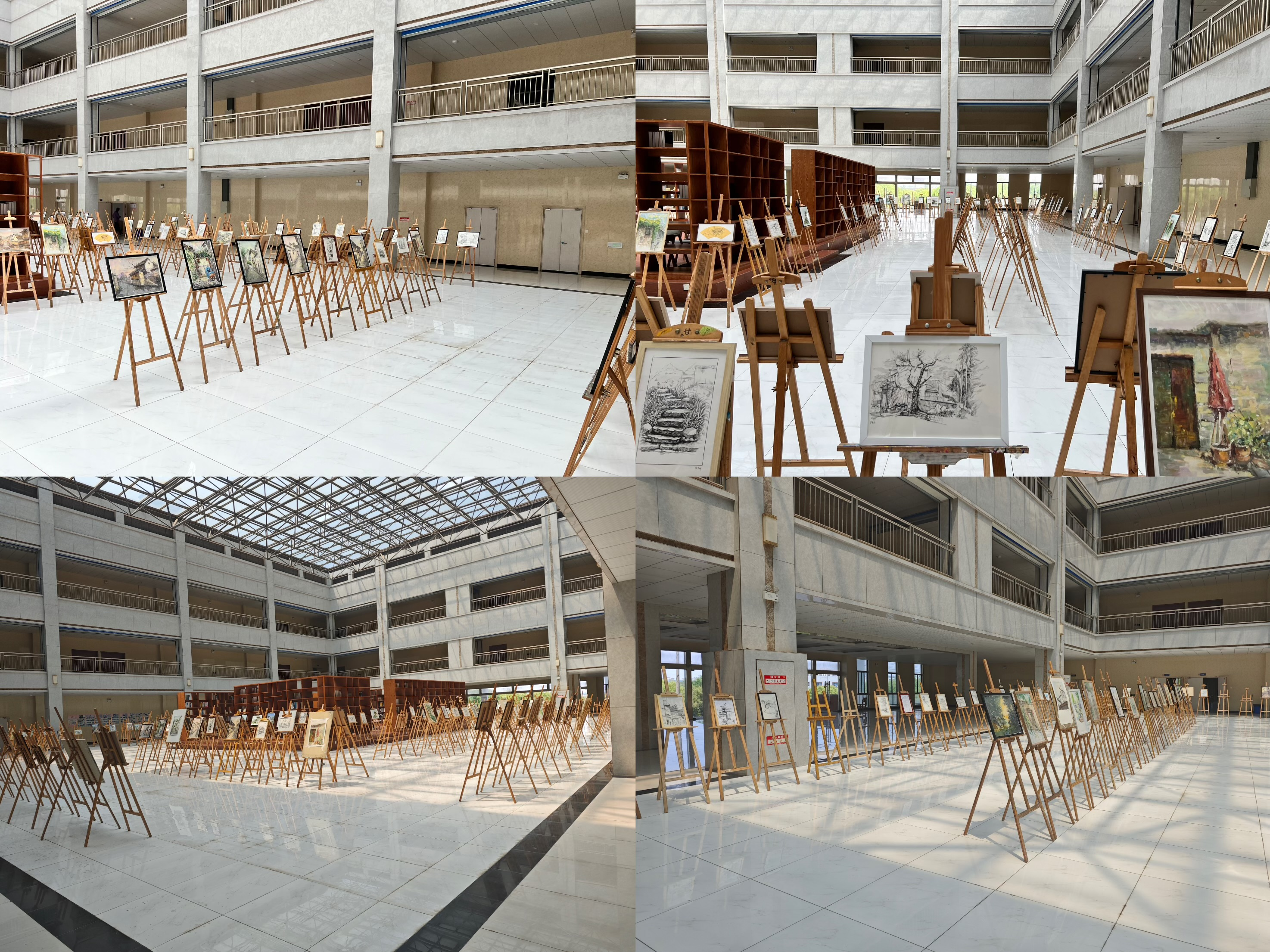 从前期筹备到现场呈现,师生团队通力协作,将布展过程转化为实践教学的延伸课堂。各位专业教师分组指导学生完成作品装裱和布展工作,学生志愿者利用课余时间协助展览工作顺利开展。展览全面展现了学生在构图技法、创意化表达等领域的综合能力提升。