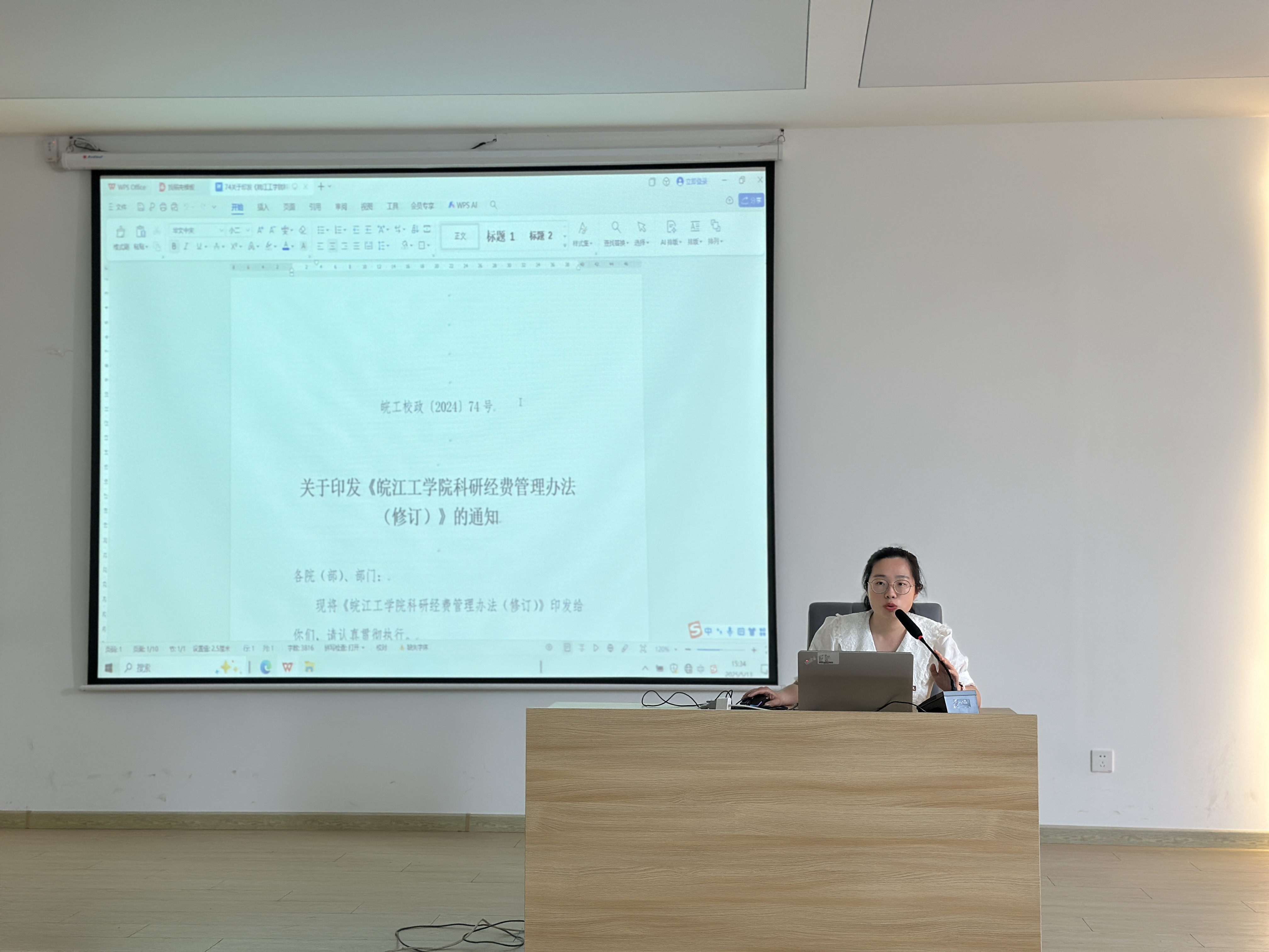 活动最后,学院院长助理韩雪针对前期向全体教职工征集到的关于科研、教研等方面的问题,结合《AC米兰官方网站科研经费管理办法(修订)》《AC米兰官方网站教师工作量计算管理办法(修订)》《安徽省普通本科高等学校教师专业技术资格申报条件》《关于科研论文分值计算的补充规定》等文件,进行了细致的解答。