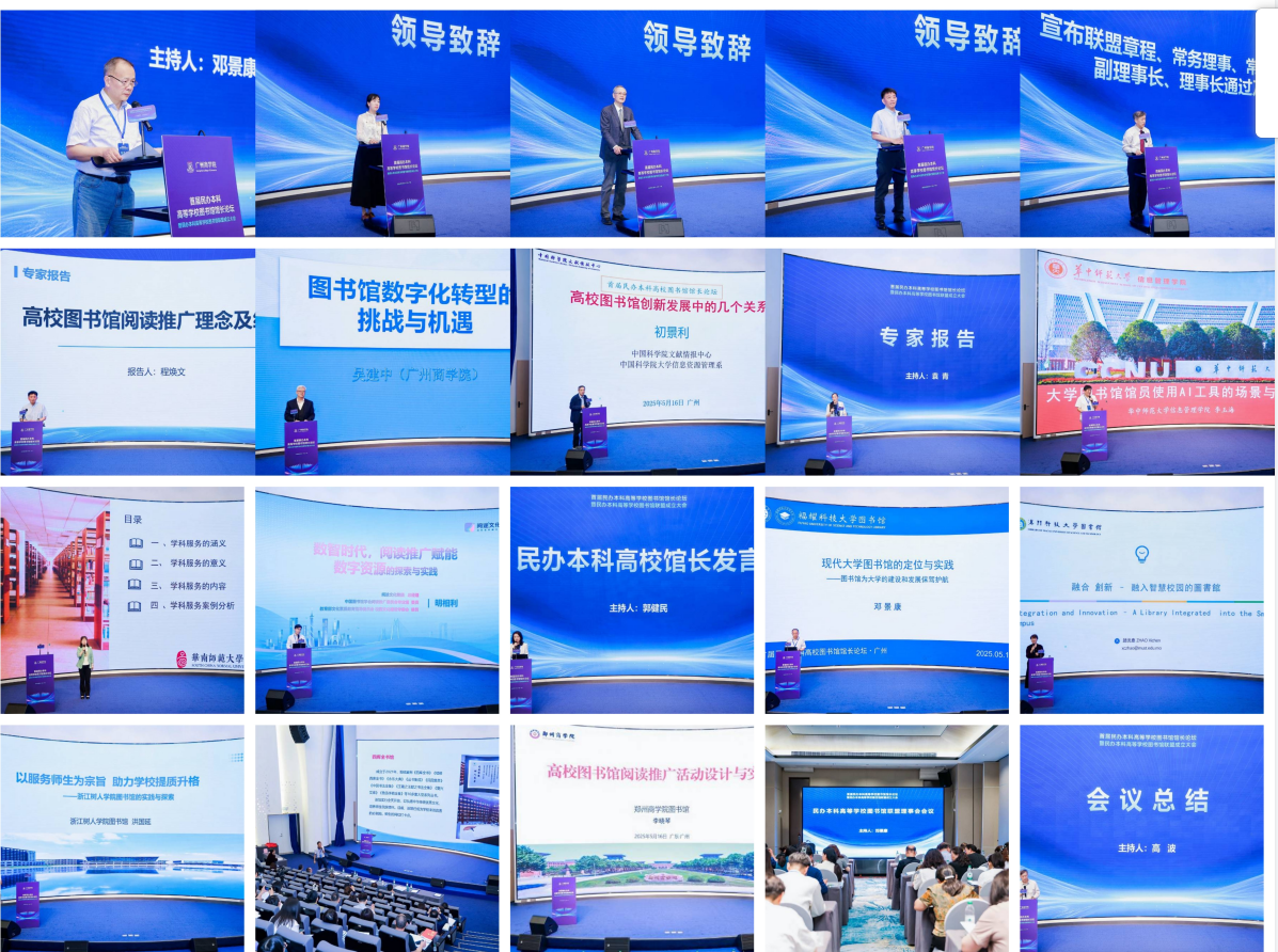 2025年5月15日至17日,由中国图书馆学会高校图书馆分会和广东省高等学校图书情报工作指导委员会、广州商学院共同举办的全国首届民办本科高等学校图书馆馆长论坛暨民办本科高等学校图书馆联盟成立大会在广州市黄埔区知识城纳米国际酒店隆重举行。来自全国28个省、自治区、直辖市和澳门特别行政区的民办本科高校图书馆馆长、业务骨干以及业界专家学者共160余人齐聚一堂,共同探索民办本科高校图书馆事业发展新路径。