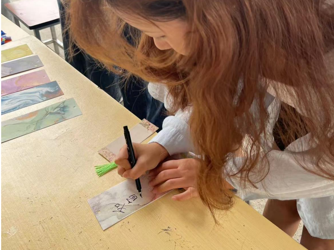 优美的诗句具有强大的感染力,适当的书法练习可降低皮质醇水平,促进情绪稳定。参加活动的学生们将诗句写在事先准备的特色书签上,书写的文字不但传递了情感,还能潜移默化安慰心灵。硬笔书法书写与心理疏导相结合的创新形式,为财经学子带来一场别具一格的身心体验之旅。