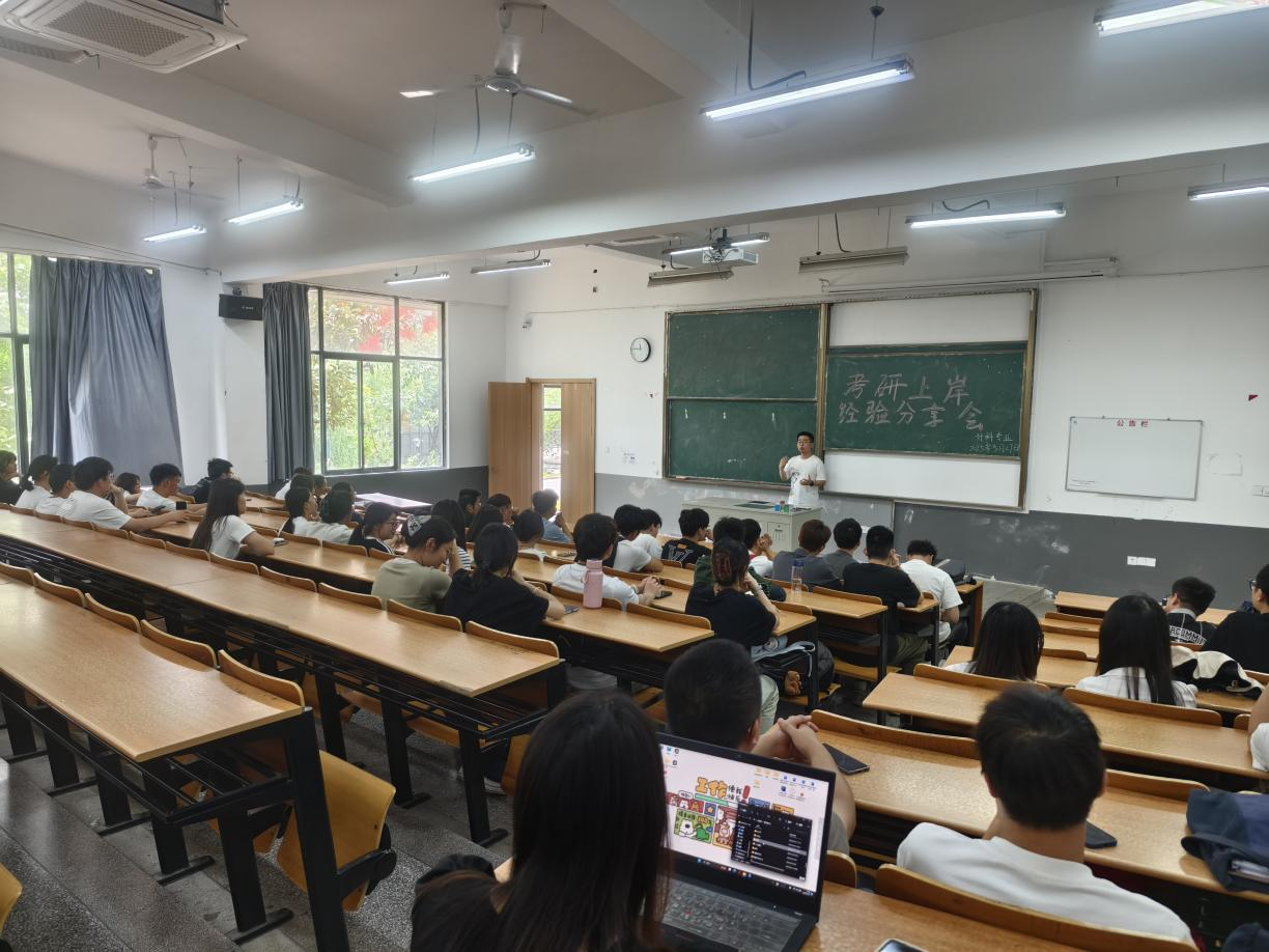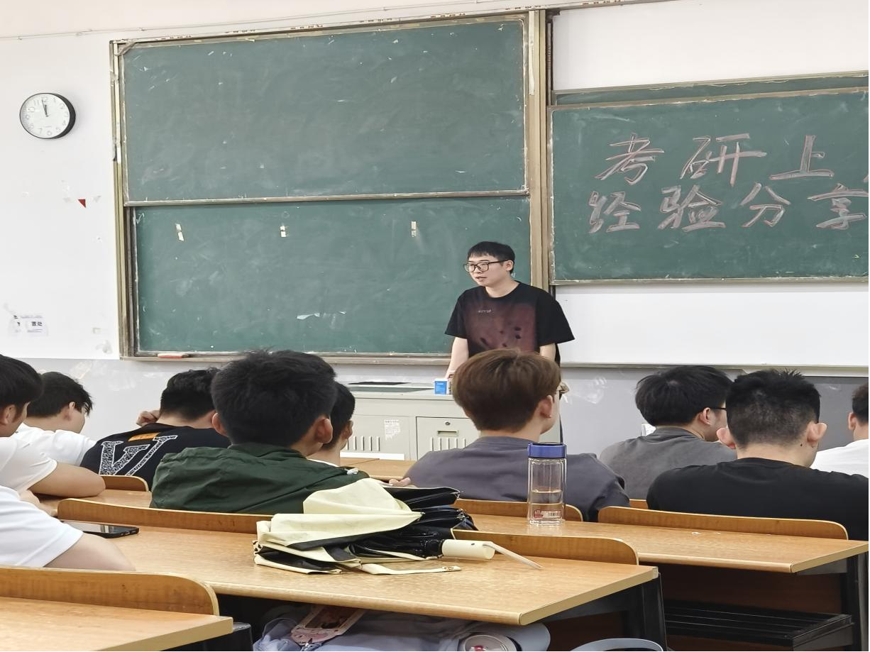 随后,成功上岸的洪志陈、陈俊帆、崔金旭、何瑞等多位同学依次上台分享了自己的考研历程。他们从考研目标院校及专业选择、备考资料搜集与整理、各科复习方法与时间安排、考研心态调整以及复试技巧等多个方面进行了详细讲解。