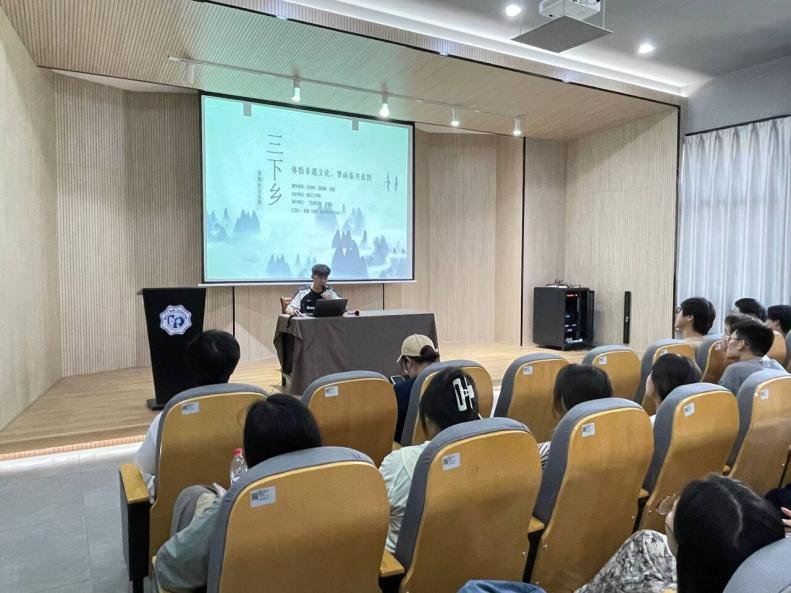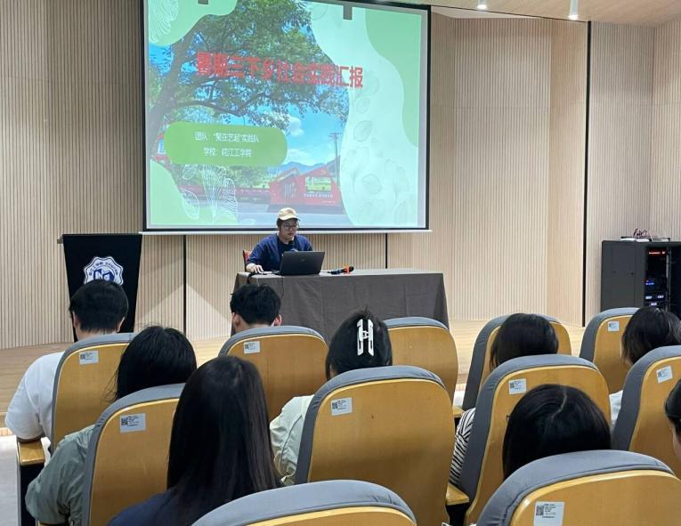 会上,刘慧老师作动员讲话,她强调“三下乡”活动是青年学子将专业特长与社会需求相结合的重要平台,要求各团队立足设计专业特色,聚焦乡村振兴、文化传承等国家战略开展实践活动。24年暑期三下乡社会实践优秀团队代表进行了精彩的经验分享,“繁昌慢谷 绘染中分”团队负责人李雪真详细介绍了他们如何运用环境设计专业知识,以红色文化为主题,对繁昌县中分村的废弃房屋进行艺术改造,打造特色红色旅游产业链的实践过程;“体悟非遗文化,擎画振兴蓝图”团队代表姜额则生动展示了他们通过数字媒体技术,设计开发旅游手册、文创产品等创新产品,推动当地非遗文化传承与旅游发展的成功经验。