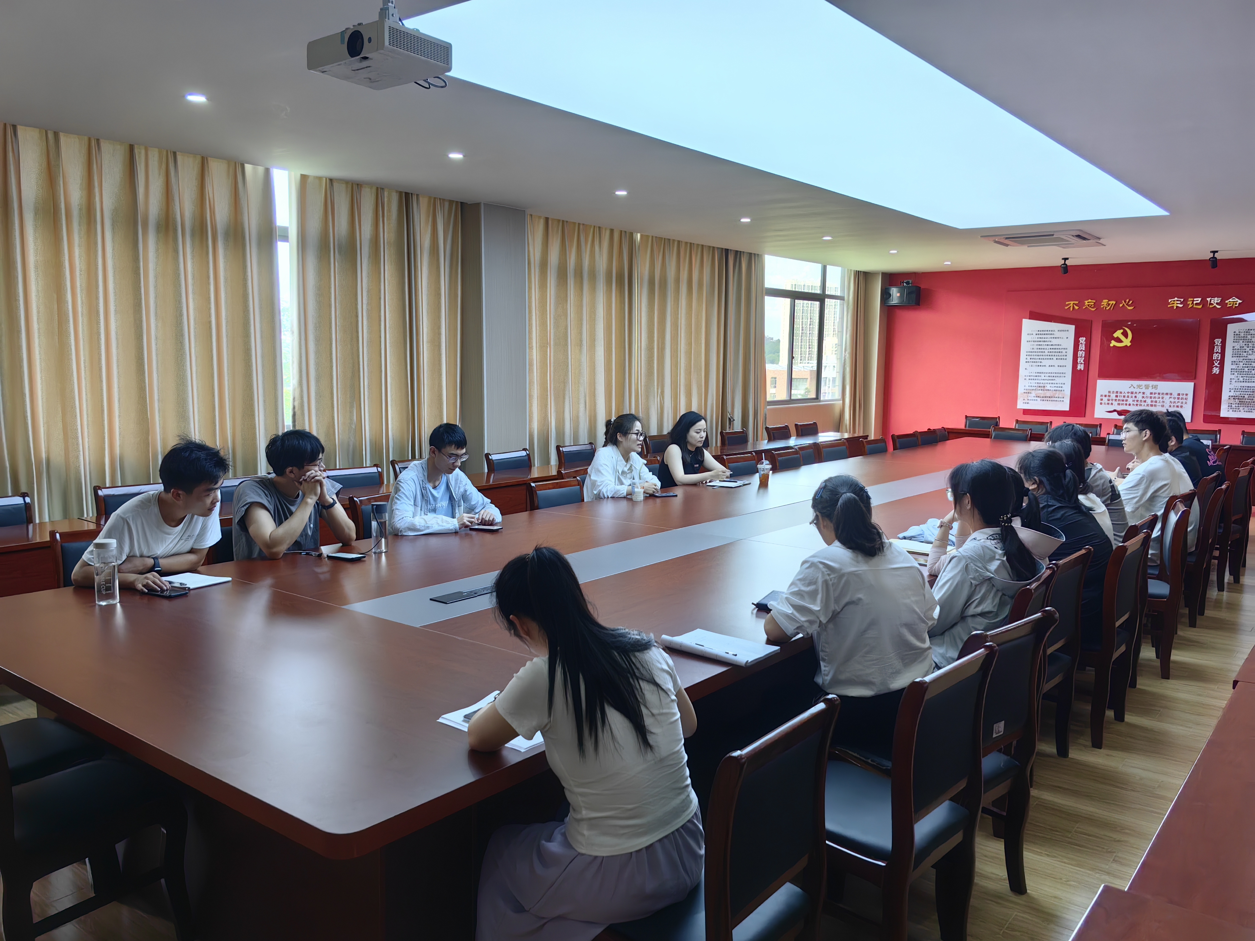 在互动环节,同学们围绕学术规划、考研备考、科研方法等问题踊跃提问。许芳分享了自己考研的经验:“提前自学目标专业课程,用行动证明自己的决心和能力。”同时颜书记结合学院特色项目,鼓励同学们积极参与学科竞赛和校企合作项目,在实践中提升竞争力。