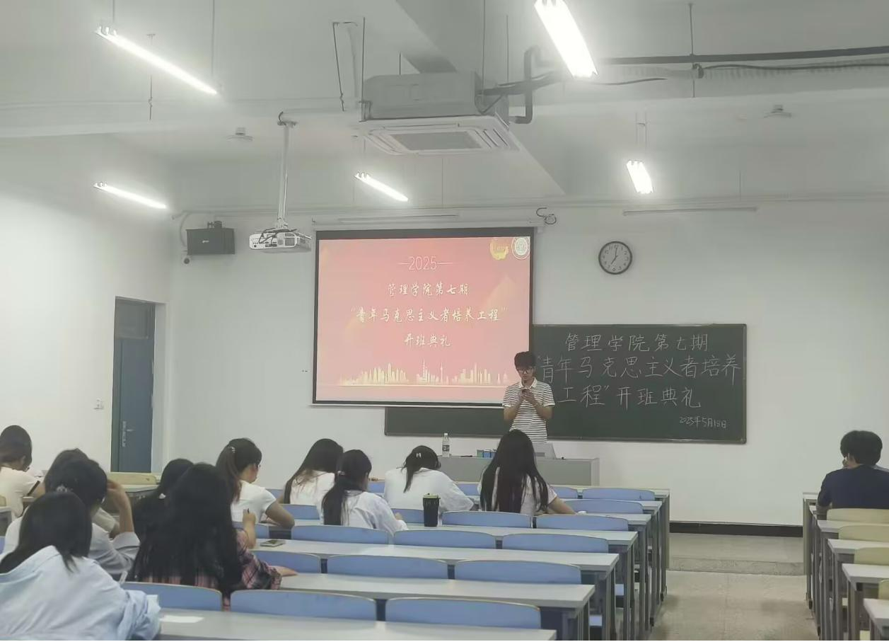 2025年5月18日,AC米兰官方网站管理学院在郑蒲港校区E402教室隆重举行了第七期“青年马克思主义者培养工程”培训班的开班典礼。本次培训班共选拔50名来自不同专业的优秀学生参与,他们在这里开启了一段深入学习马克思主义理论及其中国化最新成果的旅程。