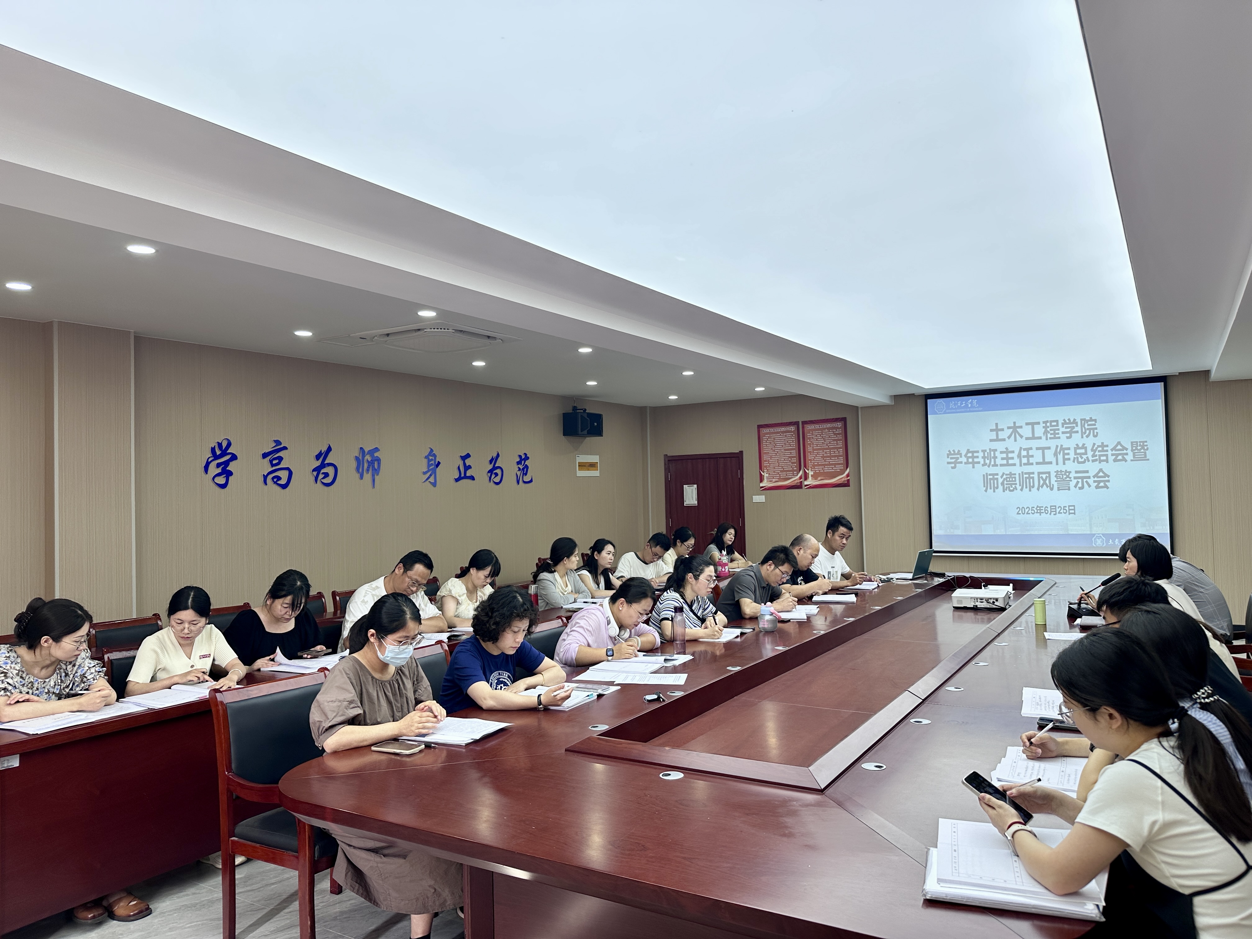 为进一步加强班主任队伍建设,总结本学年学生工作经验,深化师德师风教育,6月25日下午,土木工程学院组织召开2024-2025学年班主任工作总结会暨师德师风警示会。学院党总支书记王瑜、副书记班兵和全体班主任齐聚一堂,共话育人初心,共谋发展新篇。