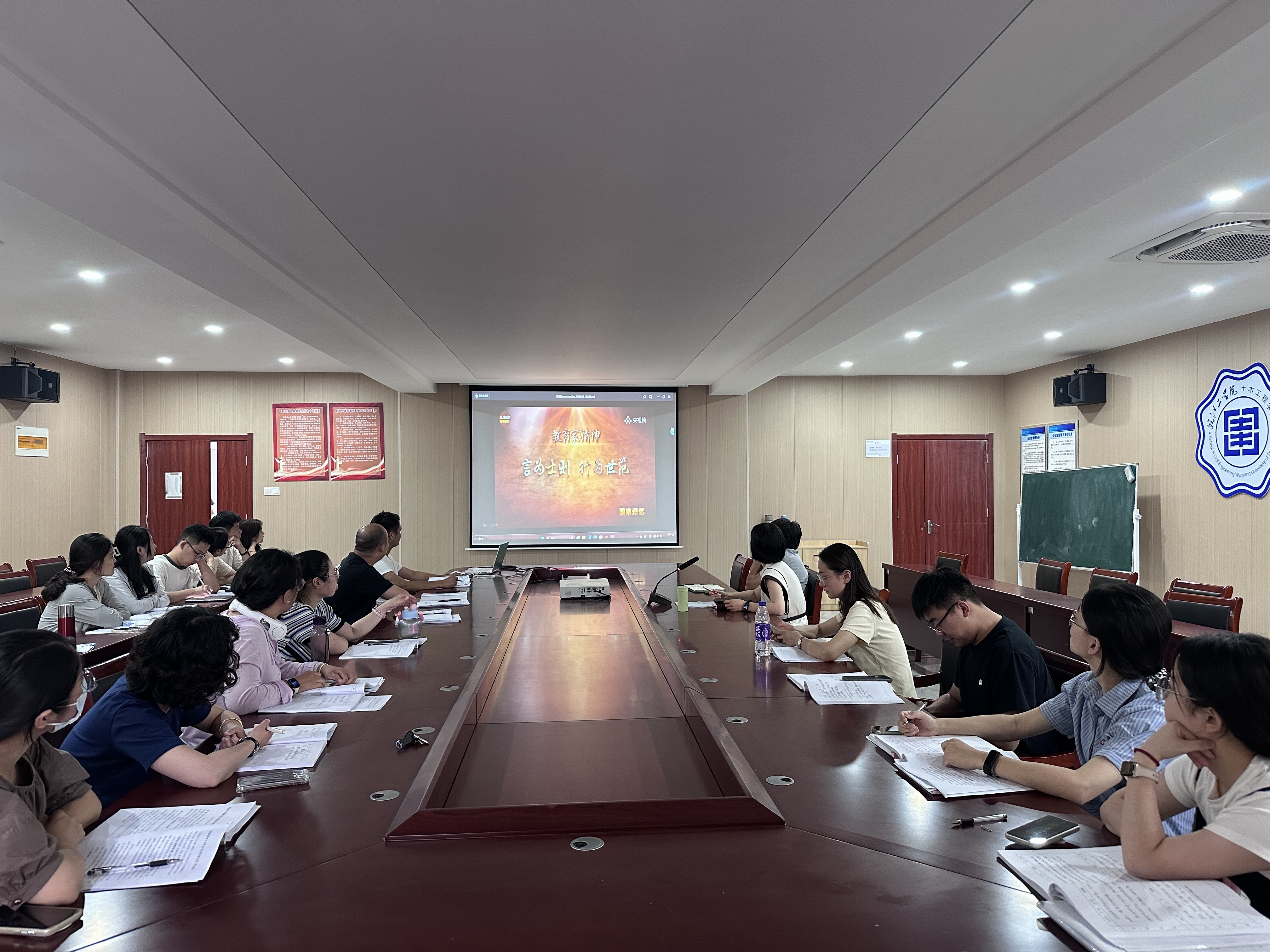 王瑜对今年以来高校领域师德师风失范典型案例进行了通报,强调以此为鉴,敲响警钟,筑牢教师职业道德防线。与会人员还集体观看了纪录片《国家记忆•教育家精神》。影片中,著名教育家和优秀教师胸怀天下、兴教强国、治学弘道、教书育人的感人故事与高尚师德风范,让在场的每一位老师深受触动。王瑜强调,全体班主任要以教育家精神为引领,既要守住师德底线,更要追求育人高线,以饱满的热情、专业的素养和高尚的师德投入到工作中,当好学生成长道路上的引路人。