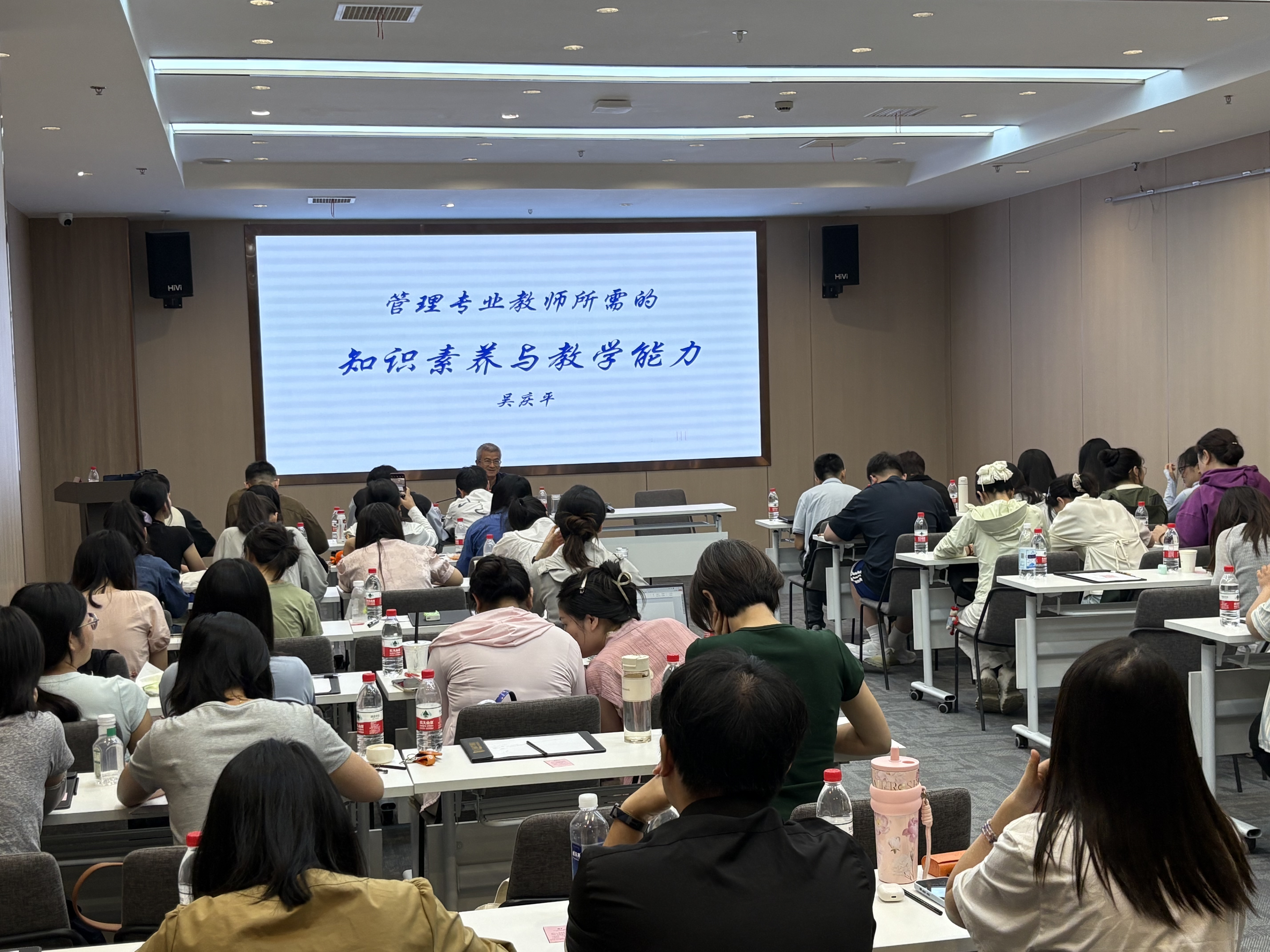 管理学院院级督导吴教授受邀作题为《管理专业教师所需的知识素养与教学能力》的专题报告,吴教授从教育理念更新角度出发,强调学习的重要性。他表示,教育领域日新月异,骨干教师需保持学习的紧迫感,做到与时俱进,不断充实扎实的理论基础,将前沿教育理念与教学实践深度融合,从而提升教育教学的科学性与实效性,为培养新时代人才贡献智慧力量。
