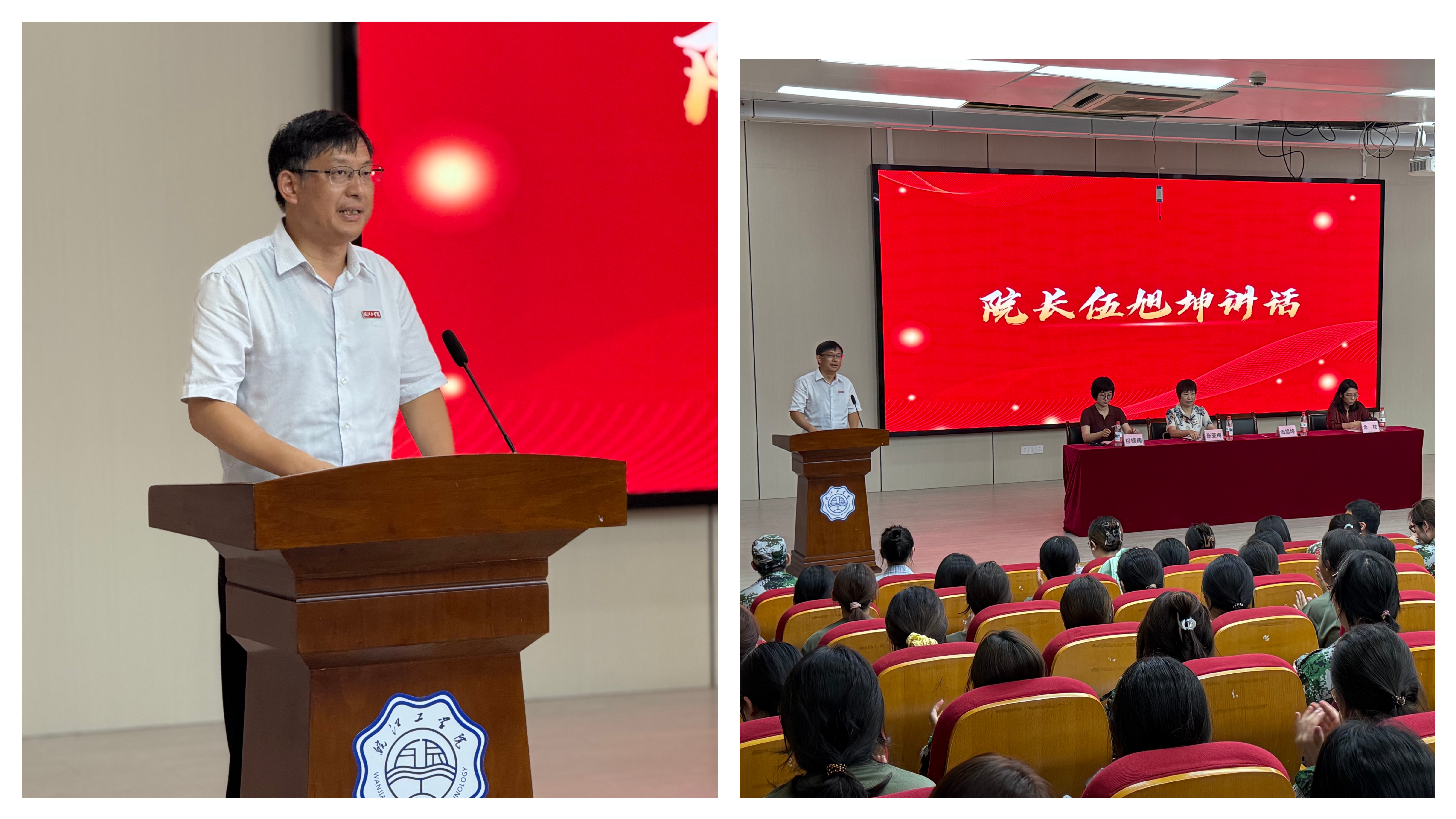 院长伍旭坤在讲话中强调,2025 年是学校迎接教育部本科教学工作合格评估的关键之年。他指出,学院近年来在教育教学改革、软硬件设施建设、师资队伍优化等方面取得显著成效,“崭新的实验室、海量的图书资源、卓越的师资力量,已为同学们搭建起实现艺术理想的坚实平台”。伍旭坤寄语新生:“你们既是求学者,更是学校发展的见证者。为评估贡献力量,既是责任,更是荣耀。”他希望同学们在大学期间“仰望星空与脚踏实地并重”,以人文设计赋能社会发展,用创意点亮未来。学院将全力保障学生成长,“所有教师都将是你们求学路上的引路人和同行者”。这番饱含深情的承诺,赢得现场阵阵掌声。