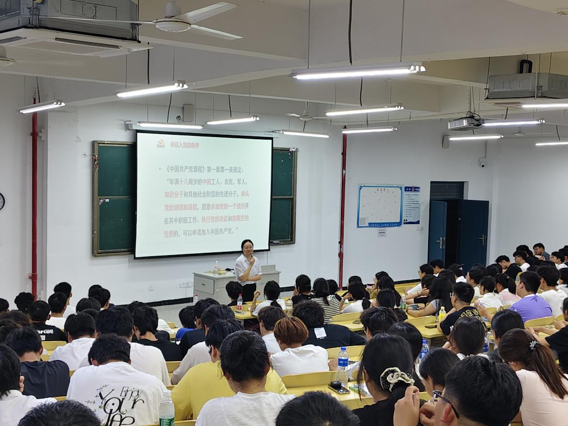为帮助2025级新生快速适应大学生活、树立正确理想信念,10月9日晚,电信工程学院在郑蒲港校区开展新生入学教育专题活动。学院党总支副书记马羽佳、党政办主任张高桢分别从学生管理与入党启蒙两大维度主讲,为新生点亮成长“导航灯”。
