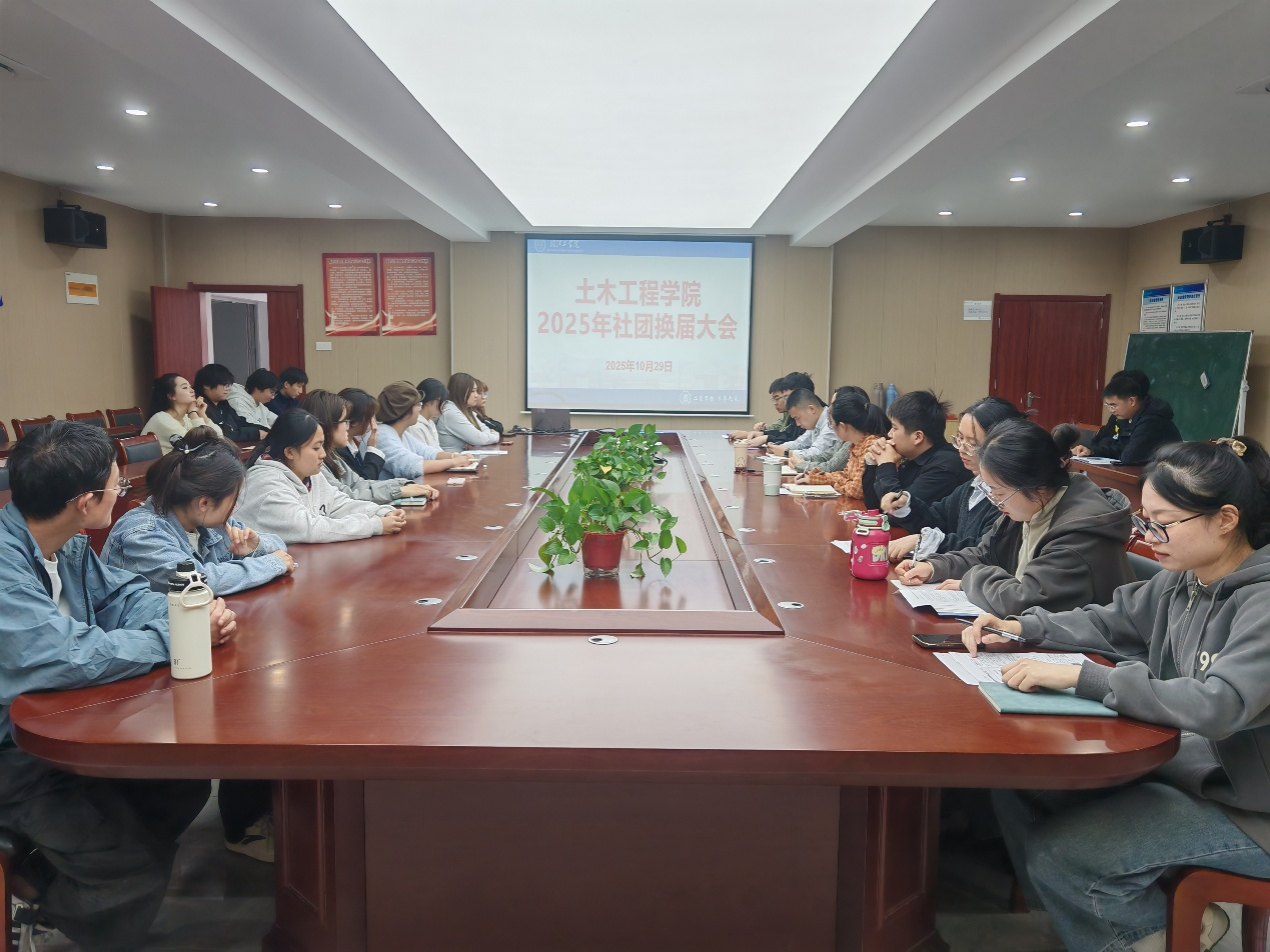 10月29日,土木工程学院2025年专业社团换届大会在水木楼西501会议室隆重举行。学院党总支书记王瑜、院长助理韩雪、各社团指导老师及各社团社长、副社长共同参加。