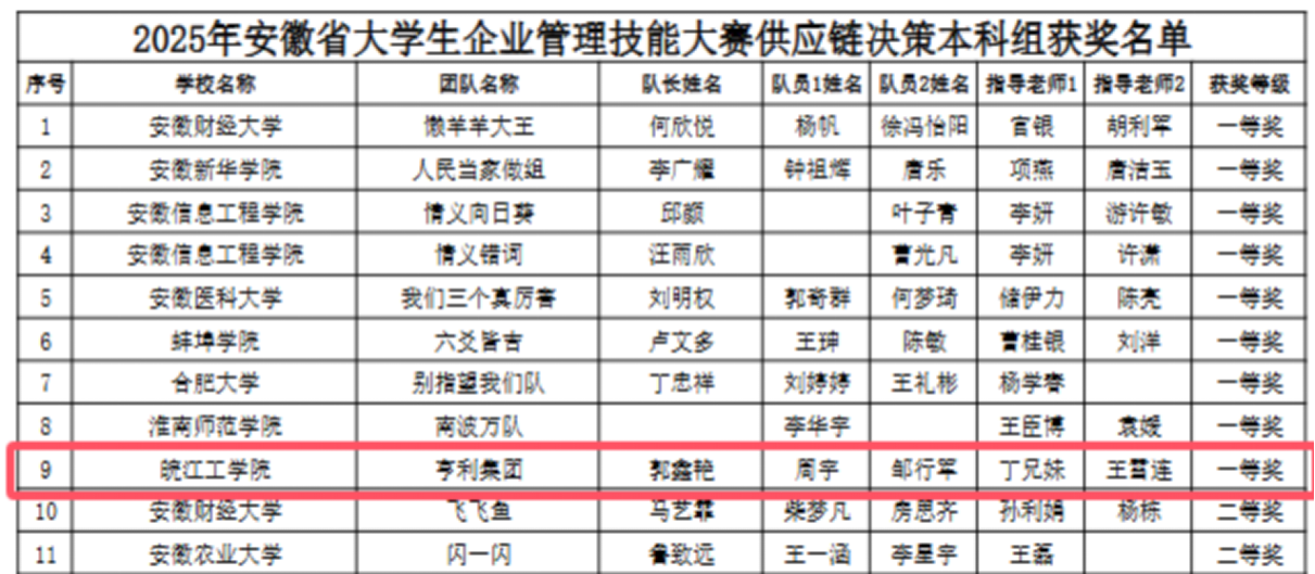 喜报:财经学子在2025年安徽省大学生企业管理技能大赛中喜获佳绩