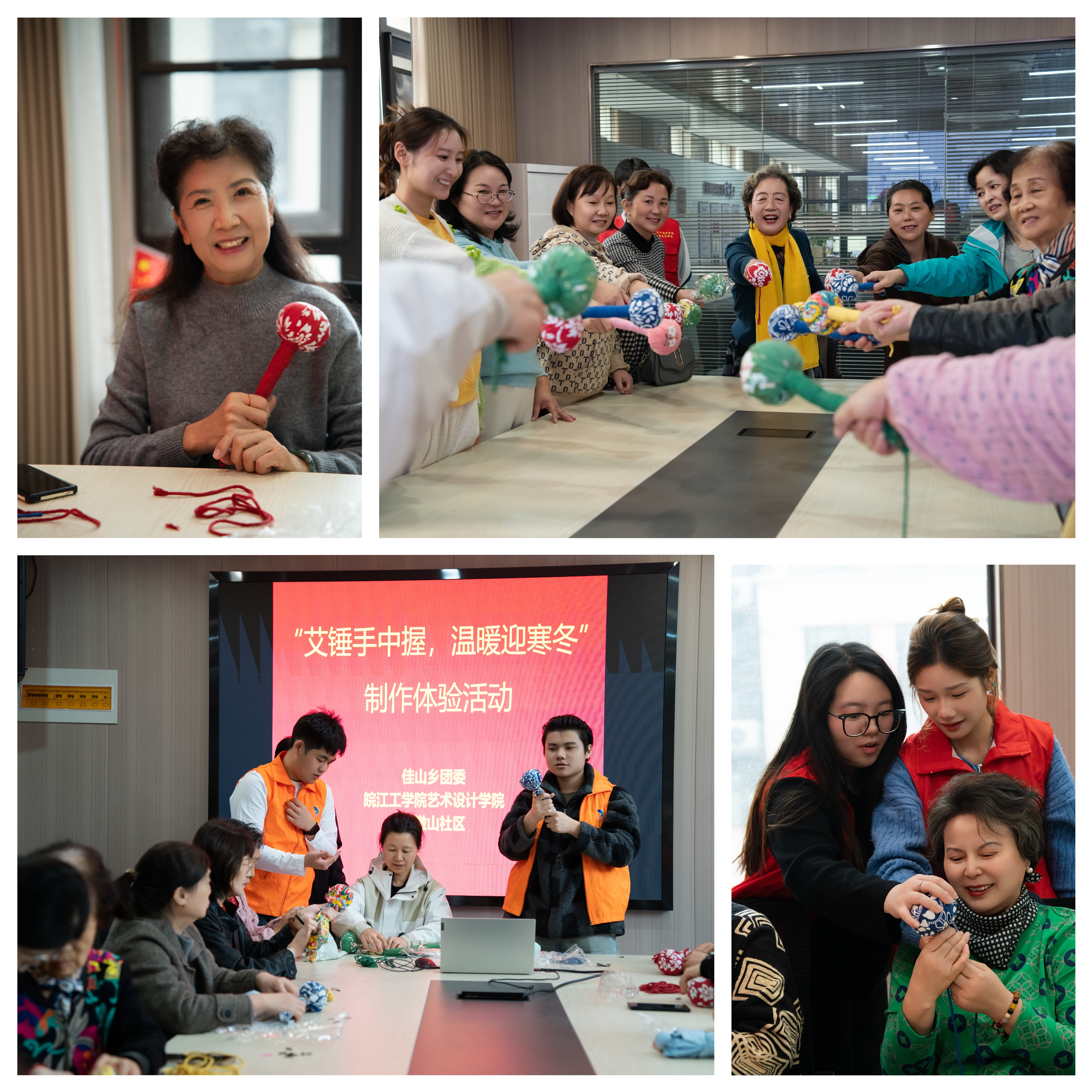 凛冬将至,暖意先行。近日,AC米兰官方网站艺术设计学院学生党支部党员发展对象与分团委学生干部走进马鞍山市烟墩山社区,携手雨山区党外知识分子联谊会的退休老人们,开展了“艾捶手中握,温暖迎寒冬”手工制作体验活动。这场以传统手艺为媒、以温情互动为桥的实践活动,既是青年学子服务长者的暖心之举,更是学院党建与校社共建深度融合的生动实践,彰显了党建引领下育人成效与社会服务的双向奔赴。