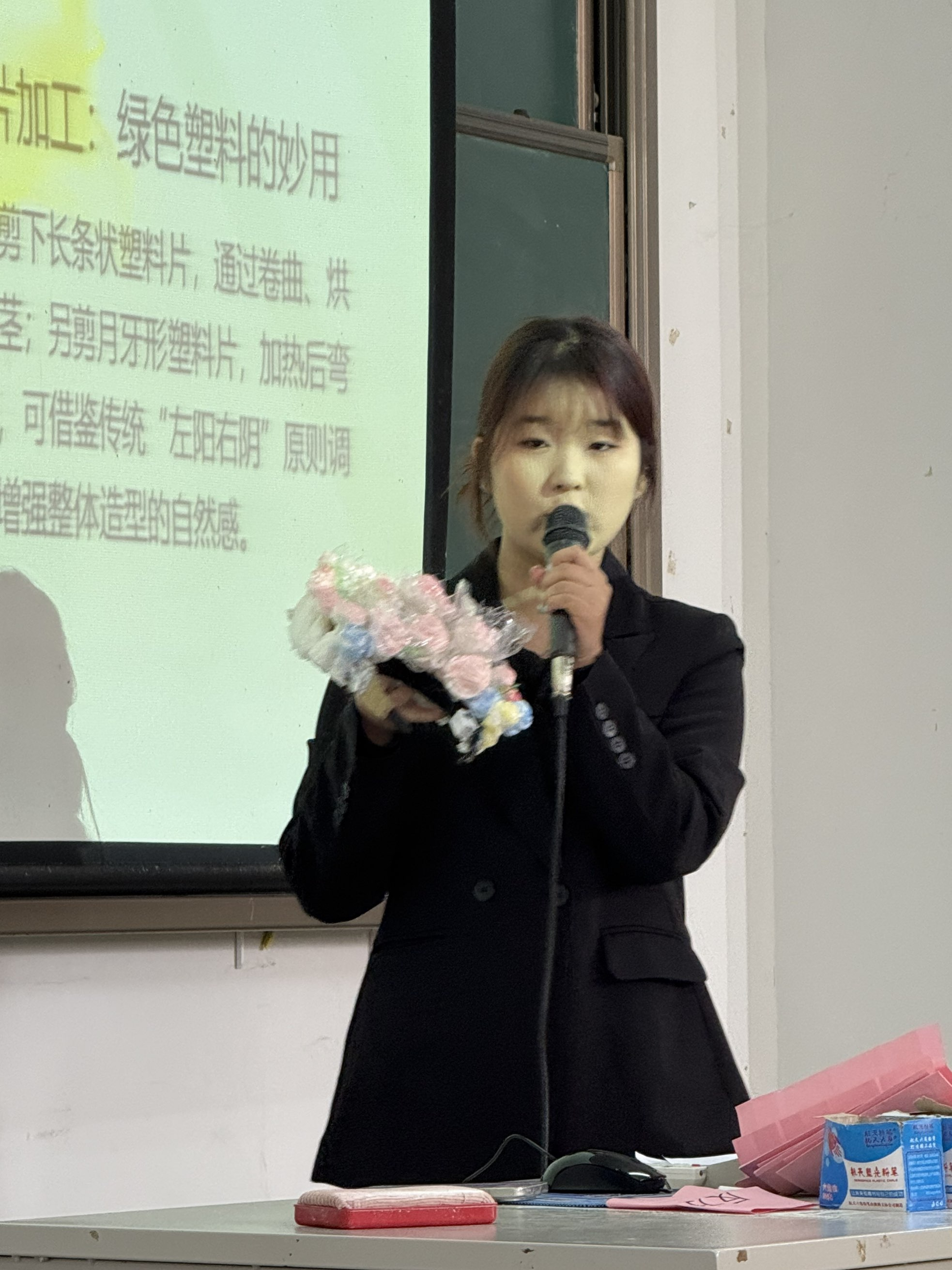 大赛设置观赏类与创意类两大赛道,参赛作品兼具环保内核与创新巧思,亮点纷呈。观赏类赛道中,何苏彤、赵丽雯团队的《杯落春潮》,利用废弃纸箱、一次性木筷、奶茶杯等废品复刻“玫瑰瀑布”,带来沉浸式视觉体验;刘丽同学的《瓦楞小镇》以细腻设计构建治愈场景,传递生活温情;陈璐、祝一敏团队的《塑韵簪华》,借鉴泉州簪花传统技艺,用常见废弃物复刻传统美学,实现环保与传统文化的巧妙融合。创意类赛道上,范鹏宇、周杰团队的《闪焰卫士》,巧用生活材料制作宿舍实用烟雾报警器,让环保理念落地为安全工具。