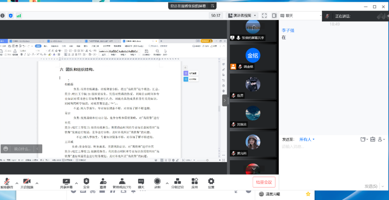 会上,张俊老师充分肯定了各项目申报书的撰写质量以及项目的创新性,并就申报书存在的问题进行了一一指导。在交流过程中,参赛团队成员积极与指导教师进行互动交流,进一步明确了参赛项目的提升方向,并表示将不断修改和完善申报书,更好地凸显项目特色与创新点。