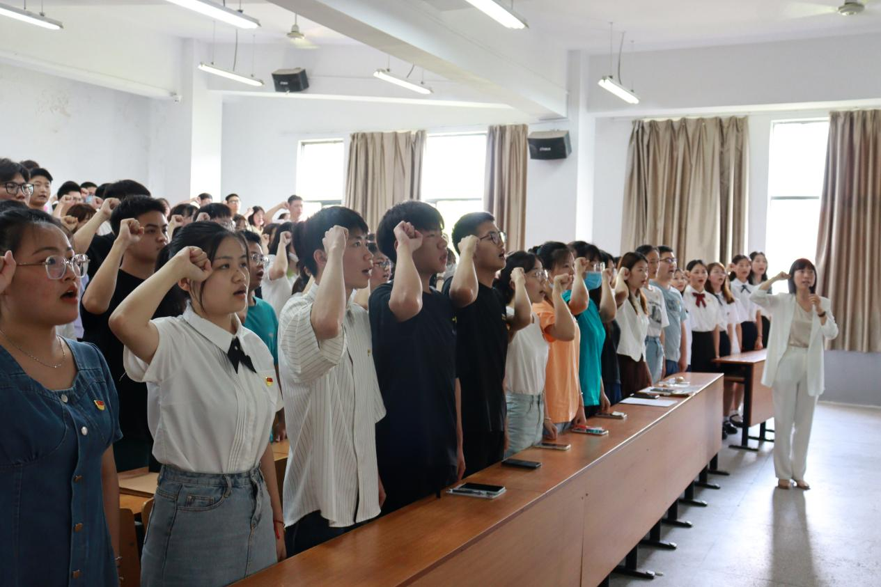 随后,在党总支副书记王瑜的带领下,全体毕业生党员重温了入党誓词。进一步坚定了初心使命,强化了理想信念和责任担当,锤炼了党性修养,明确了“永远跟党走”的决心。铿锵恢宏的誓词震撼着在场的每一位党员,激荡着在场党员们对党的无限忠诚,为即将踏上征程的全体毕业生党员注入了强大精神动力。