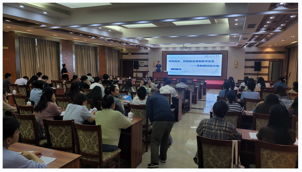 管理学院教师谭敬代表2022-23年讲课竞赛一等奖获奖教师做“赛教融合,积极推进课堂教学改革——青教赛经验分享”主题讲座。主要从专业课教学、讲课竞赛备赛两方面进行了经验分享,并结合专业课教学,进行模拟课堂教学示范。