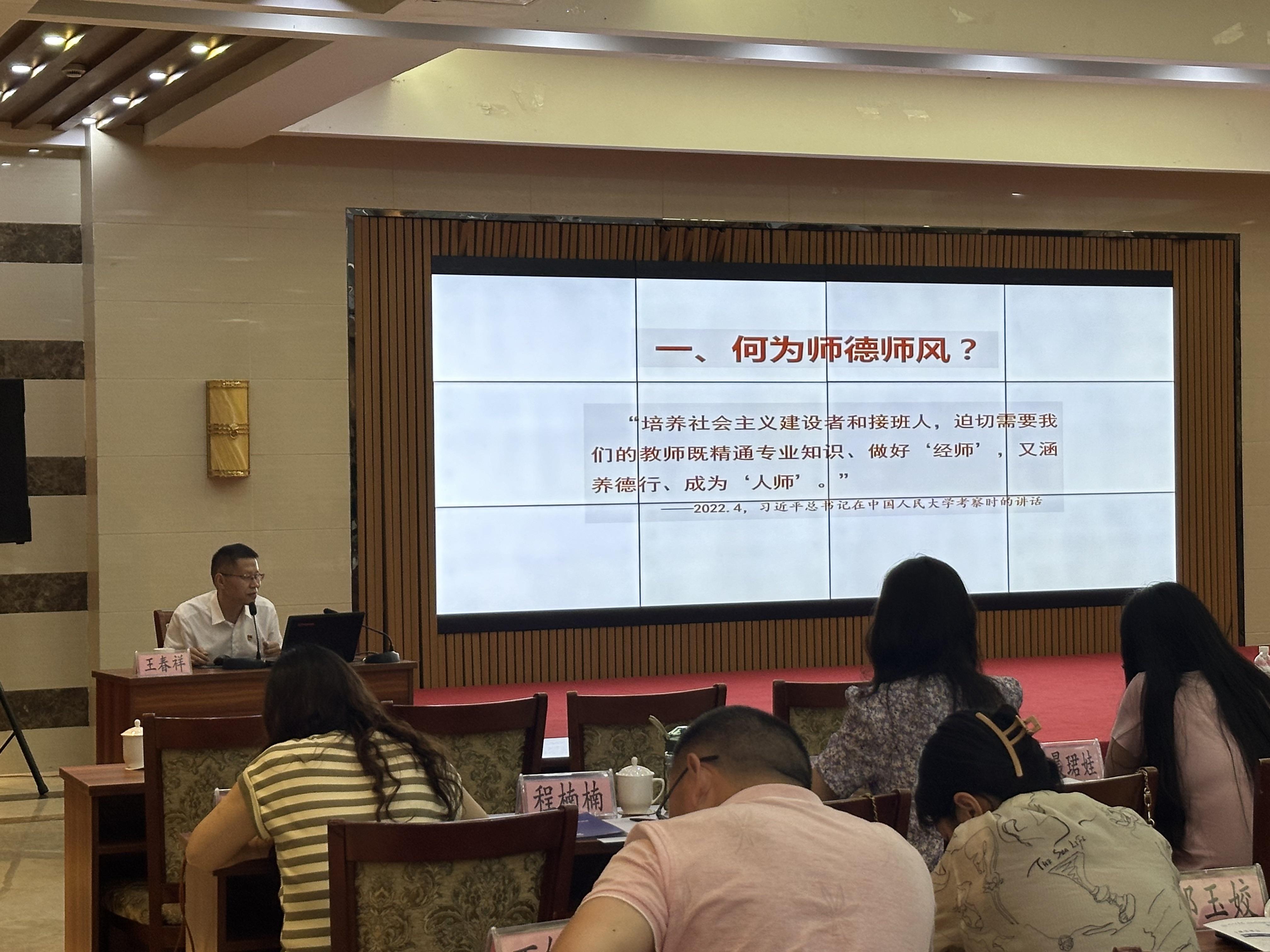8月21日培训活动在文海宾馆四楼多功能厅拉开了帷幕。AC米兰官方网站党委副书记、校长吴继敏在开幕致辞中强调了党建引领师德师风建设的重要性,并鼓励全体参训人员积极参与、深入学习、不断提升自我。