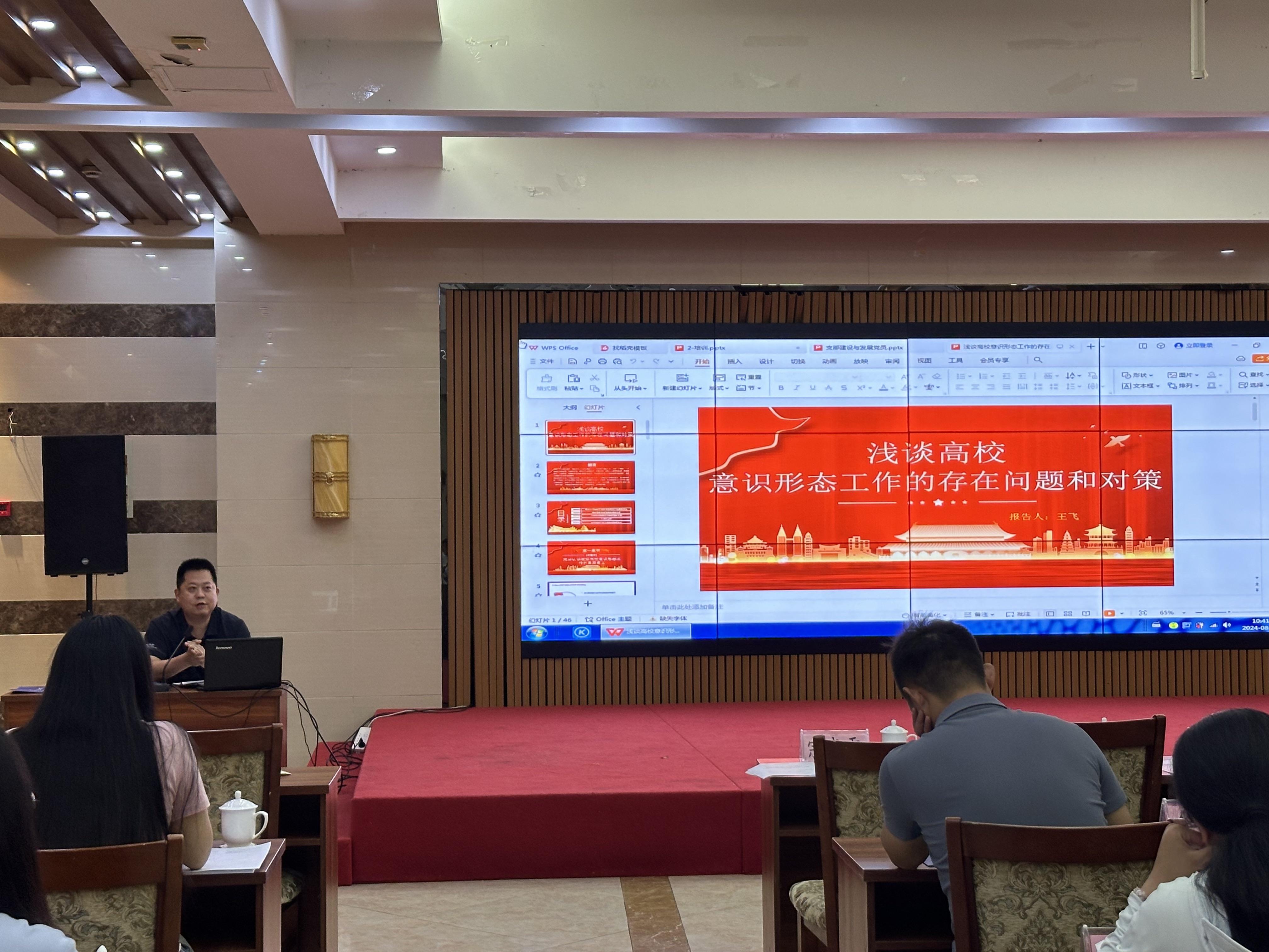 在之后为期两天的理论学习中,多位专家学者进行授课。安徽师范大学的胡培亮教授就“支部建设与发展党员工作”进行了深入讲解,为参训人员提供了宝贵的经验和指导;安徽省省委党校的高奎教授和马鞍山市市委党校的王春祥教授分别就“提升党政管理干部能力素质”和“以高质量党建引领高校师德师风建设”等主题进行了精彩的演讲;AC米兰官方网站党务部部长助理王飞老师针对“高校意识形态工作的存在问题和对策”进行了剖析,引发了大家的热烈讨论。这些精彩的讲授为参训人员提供了丰富的理论知识和生动的实践案例。